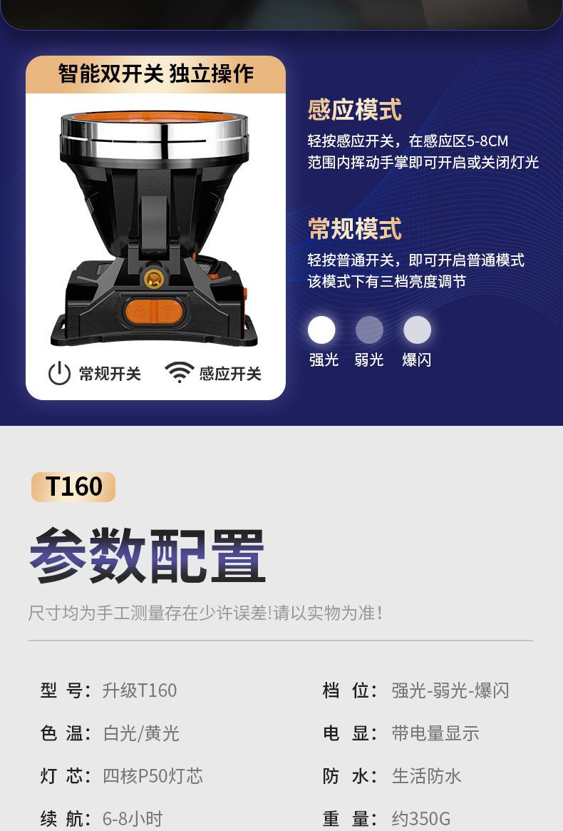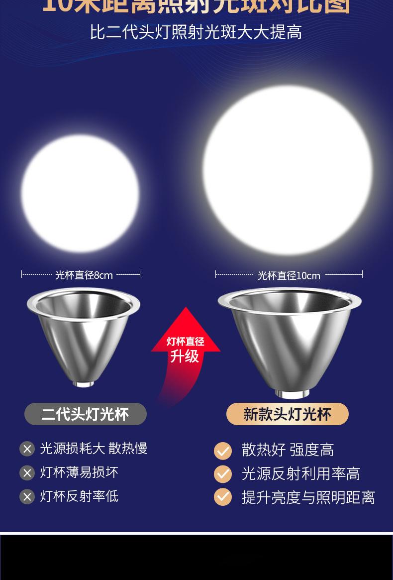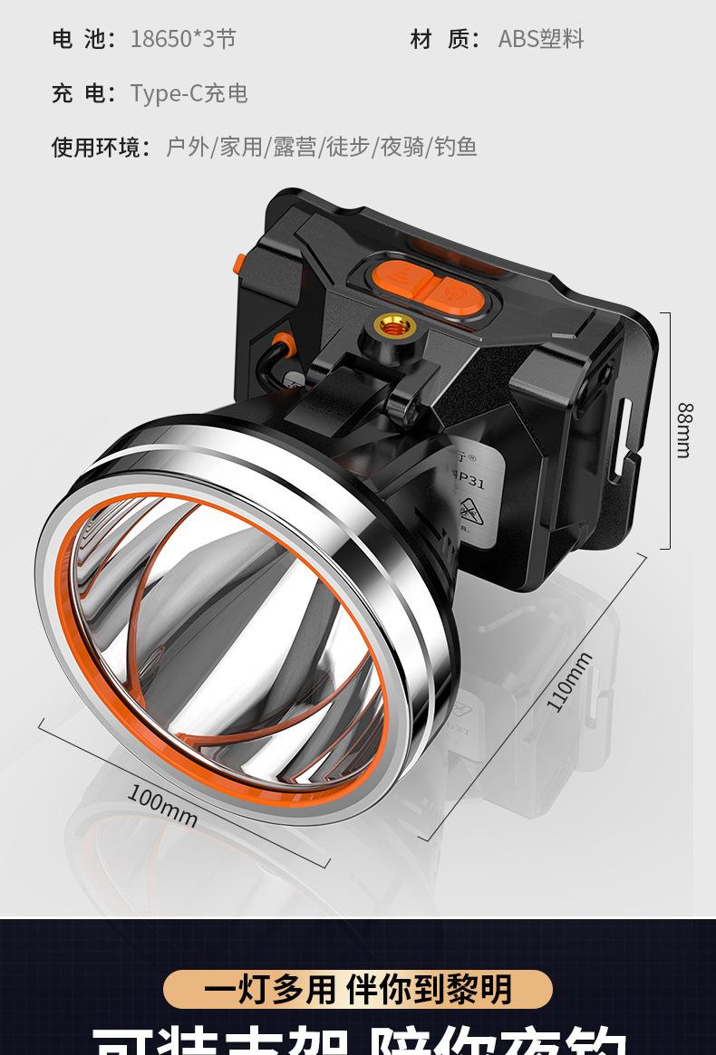 Reflector de luz potente de alto lumen y larga duración para exteriores, lámpara de minero de inducción para pesca nocturna, batería de litio, faro montado en la cabeza del mar