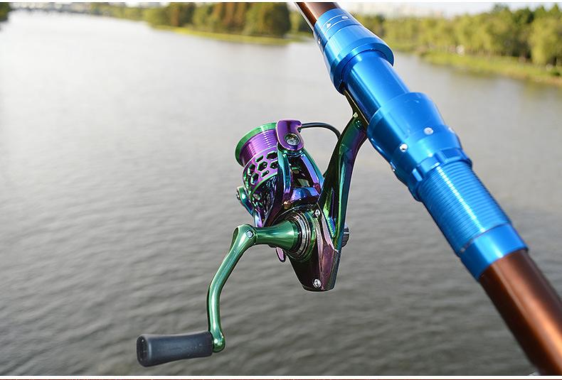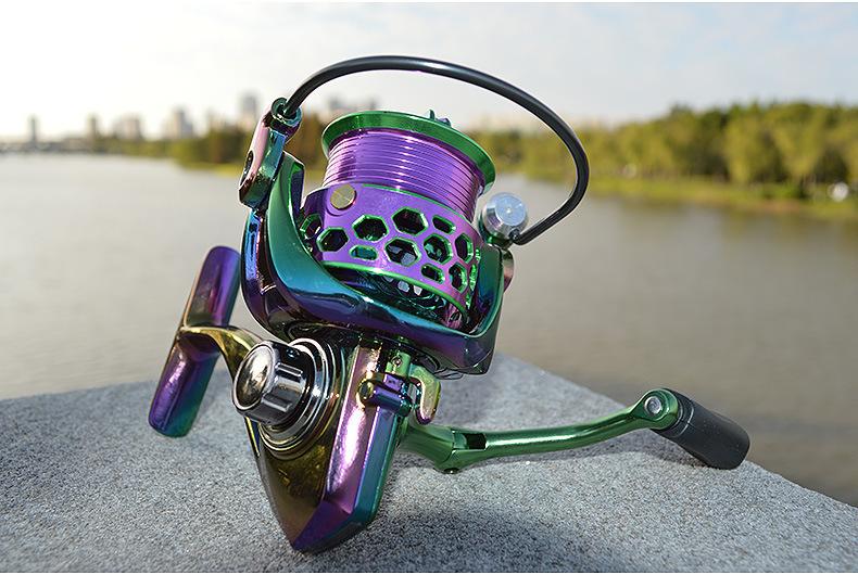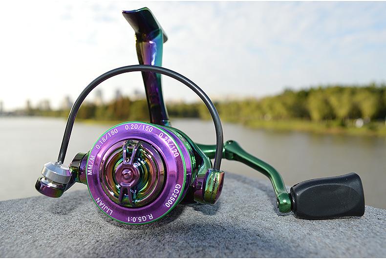 Rueda giratoria Luya colorida, rueda giratoria de metal CNC atornillada, rueda de lanzamiento remota, rueda de pesca, rueda de pesca, equipo de pesca al por mayor