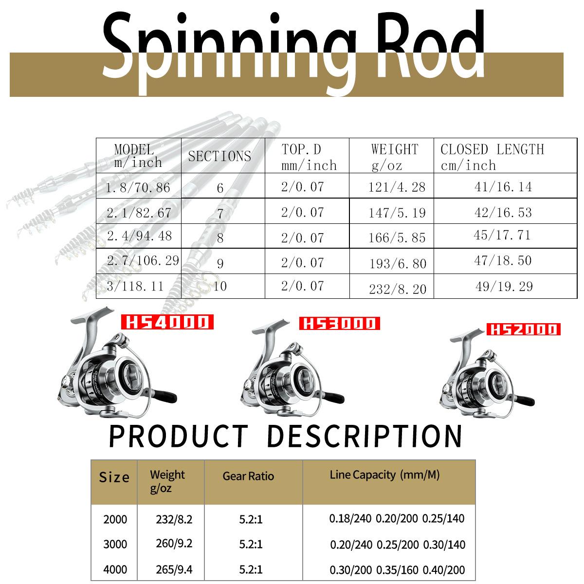 —Caña de 1.8m/2.1m/2.4m Longitud telescópica de aproximadamente 45CM