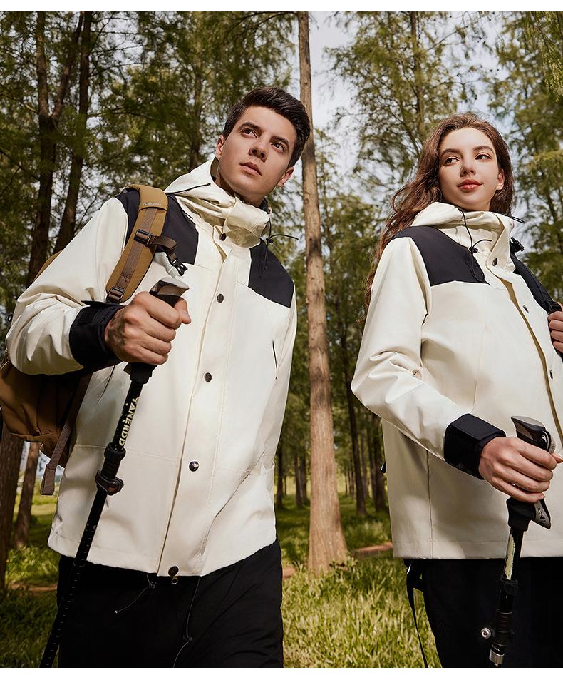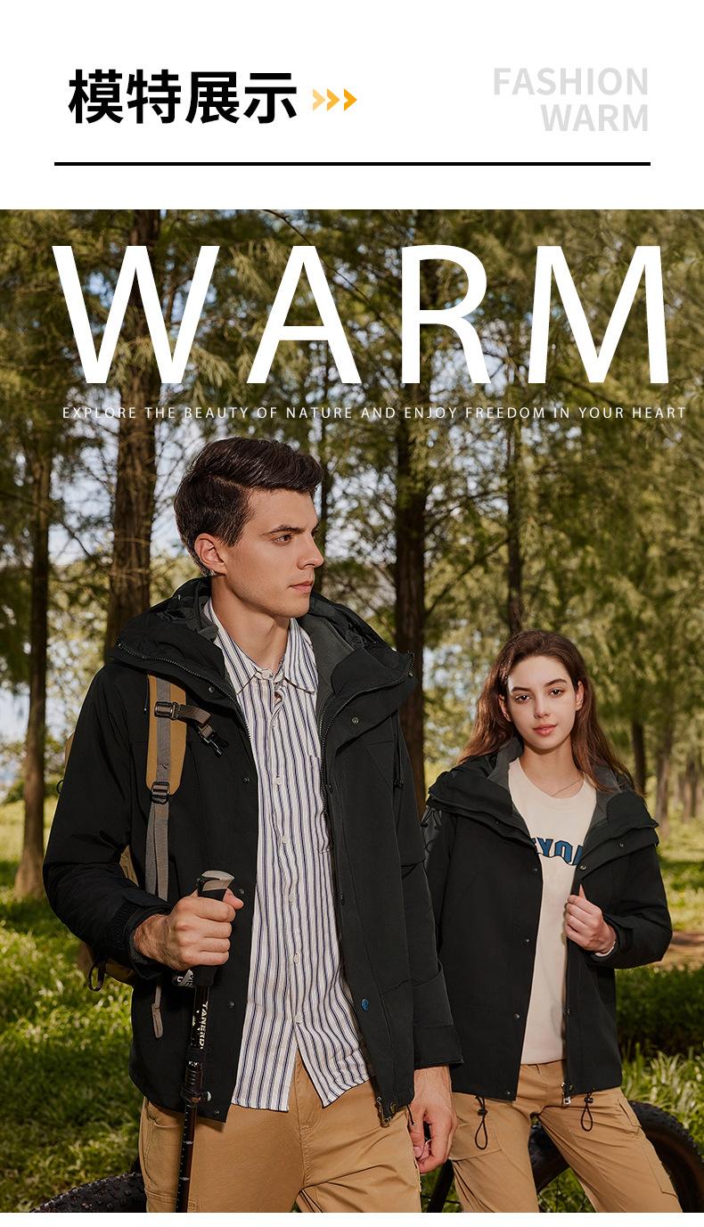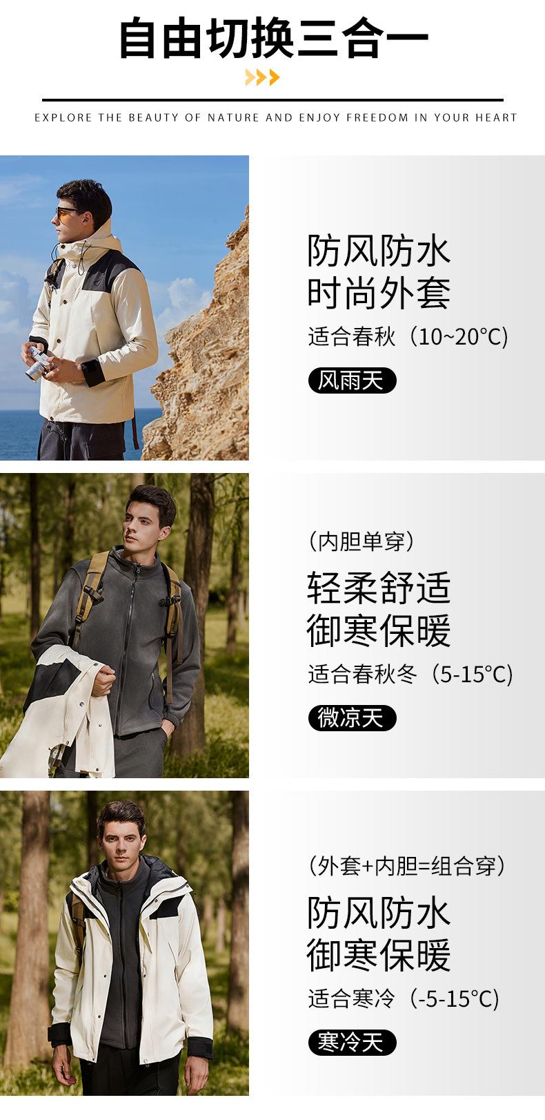 Ropa de asalto tres en uno desmontable con forro polar, ropa para grupos de montañismo al aire libre, ropa de asalto con logotipo impreso para amantes de la ropa de asalto de algodón.
