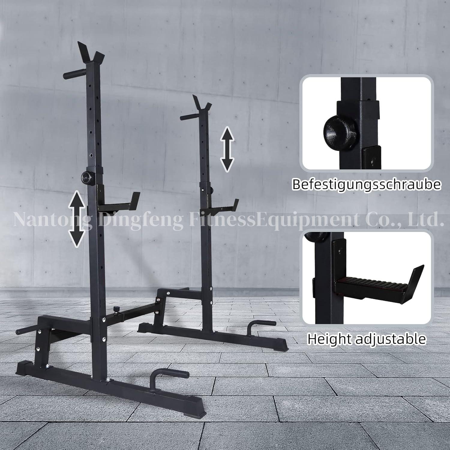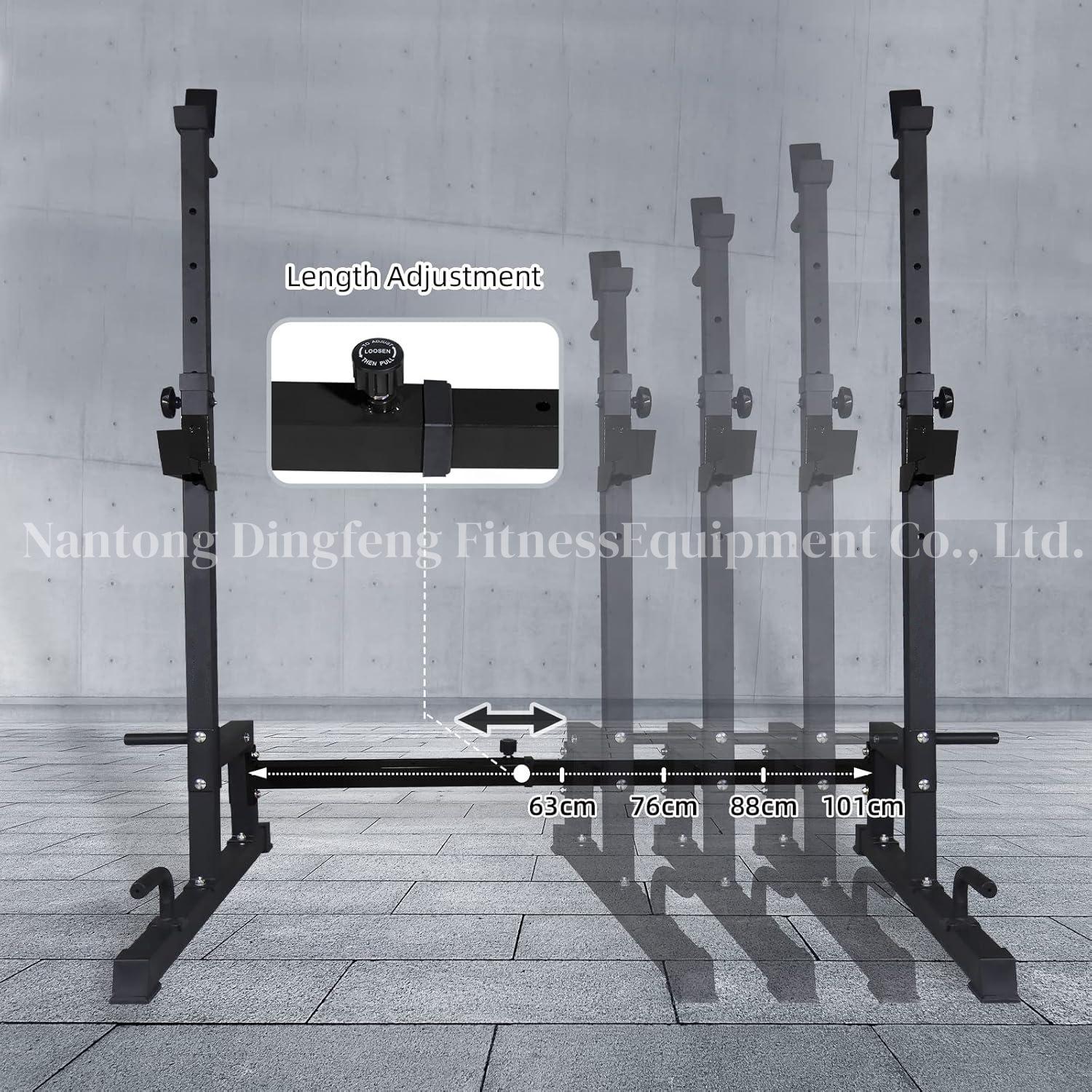 Rack para press de banca con barra para uso doméstico, para sentadillas, multifuncional, para levantamiento de pesas en interiores, equipo de fitness, ajustable, rack para press de banca ajustable en ancho, seguridad para el ejercicio, sin vibraciones, ajuste multivelocidad