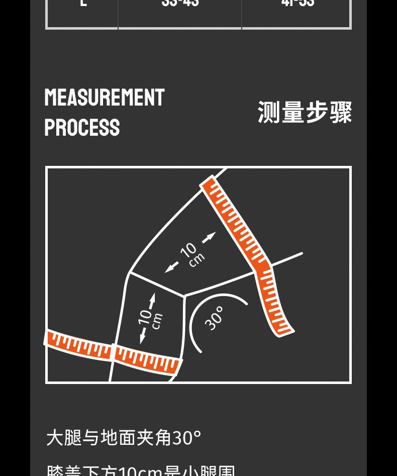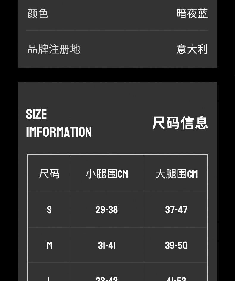 S (thigh circumference 37-47cm), M (thigh circumference 39-50cm), L (thigh circumference 41-53cm)