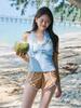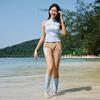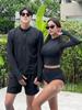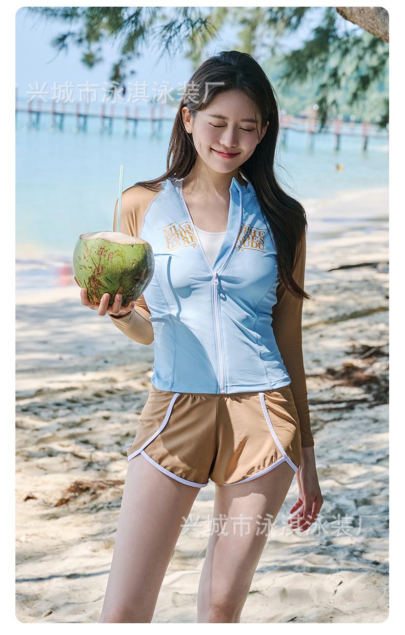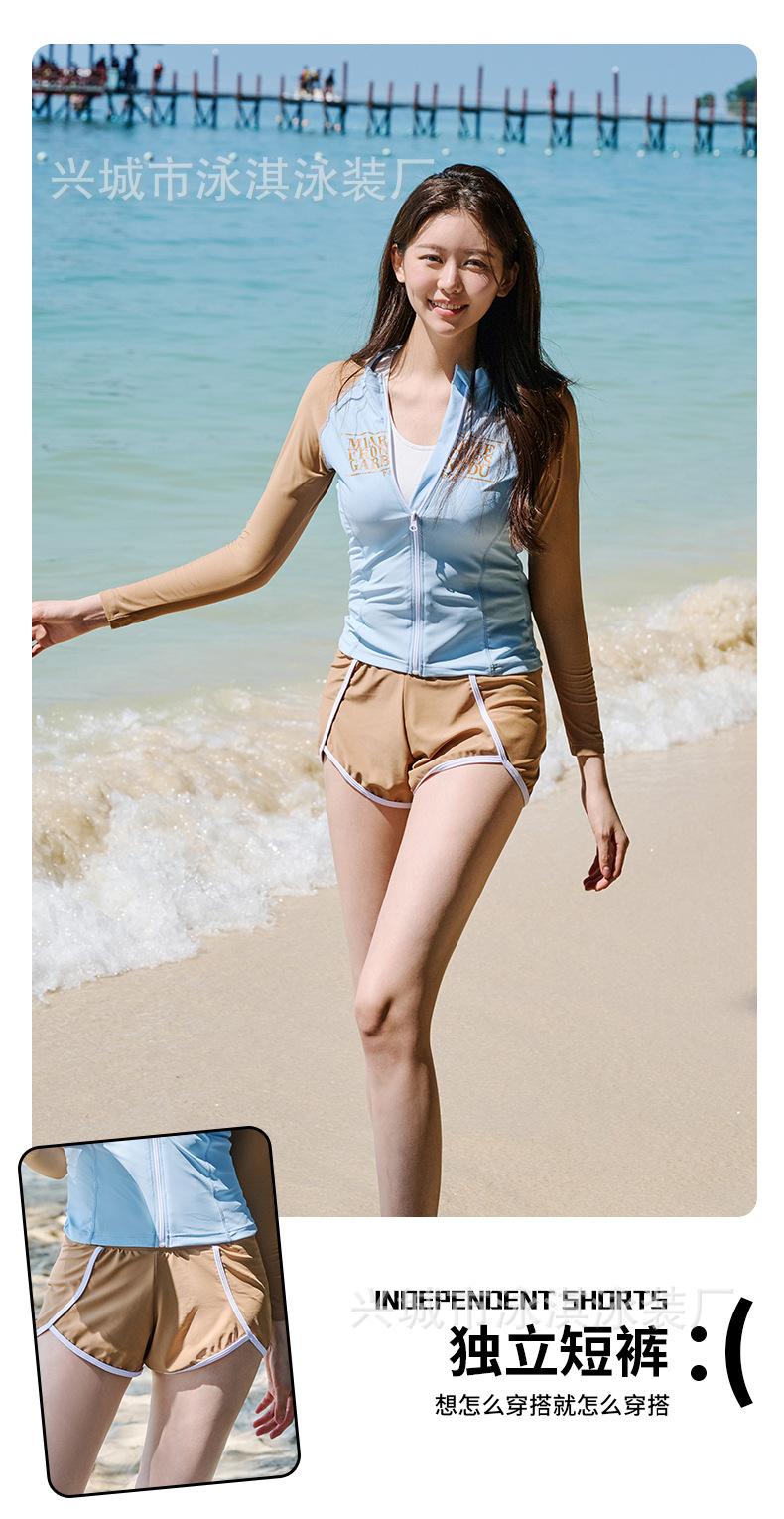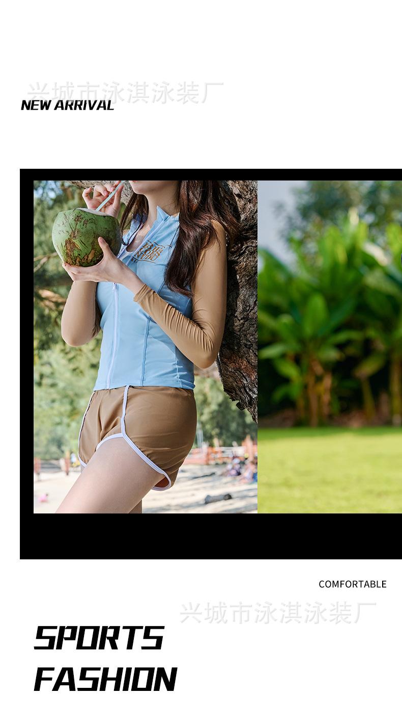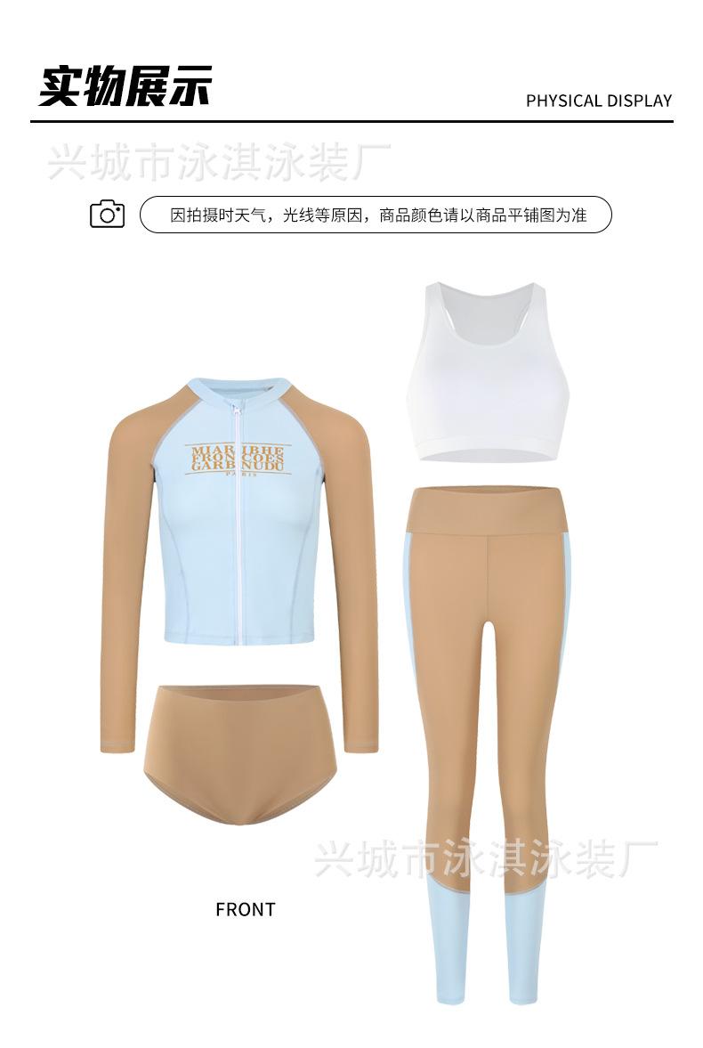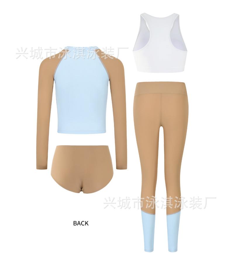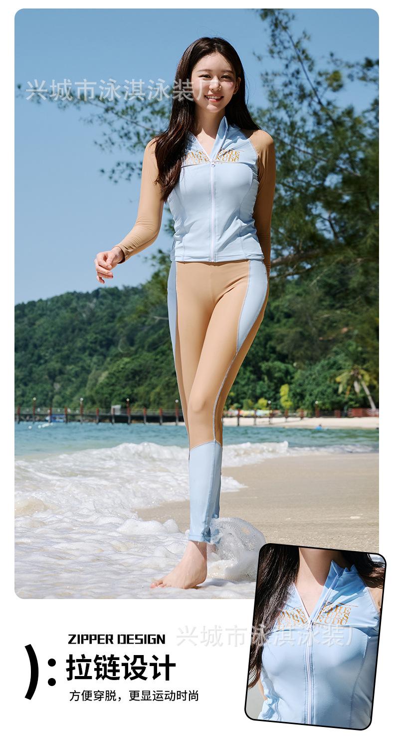 Pantalones de manga larga a prueba de sol, conservadores, de secado rápido, para deportes, carreras, surf, snorkel, traje de baño dividido, traje de buceo en contraste para mujer