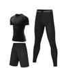Conjunto deportivo de tres piezas para hombre, ropa de secado rápido, ajustada, para entrenamiento, gimnasio, baloncesto, running, manga corta