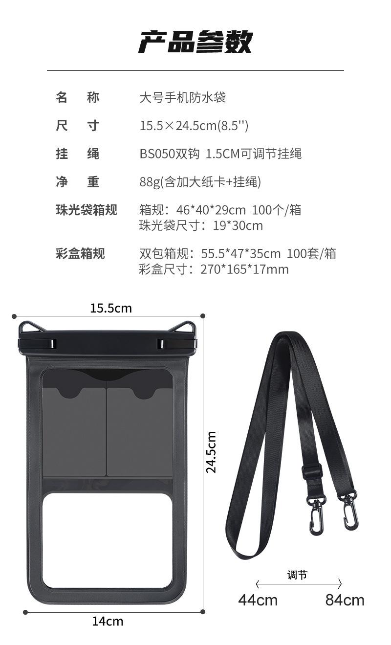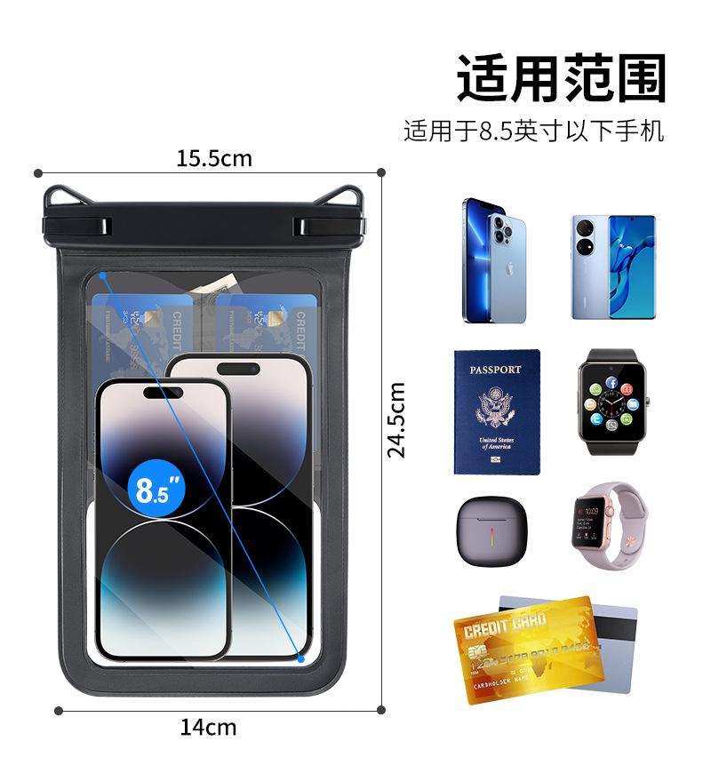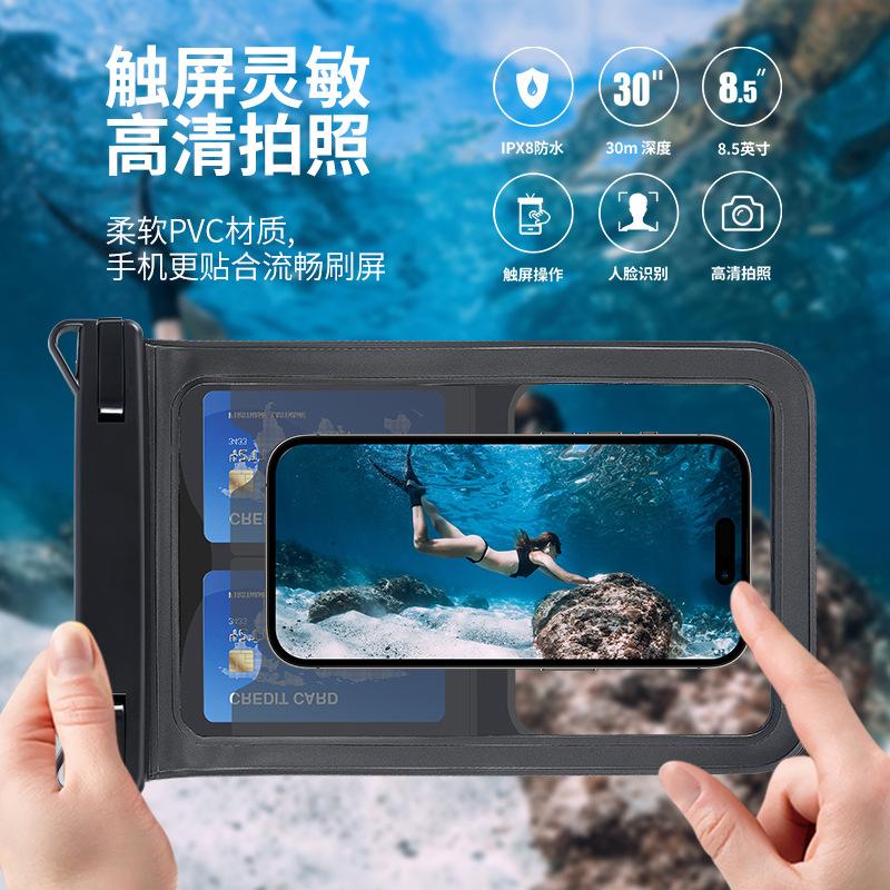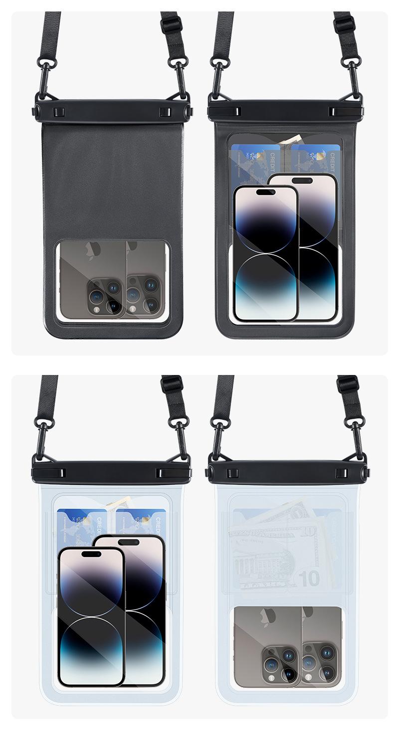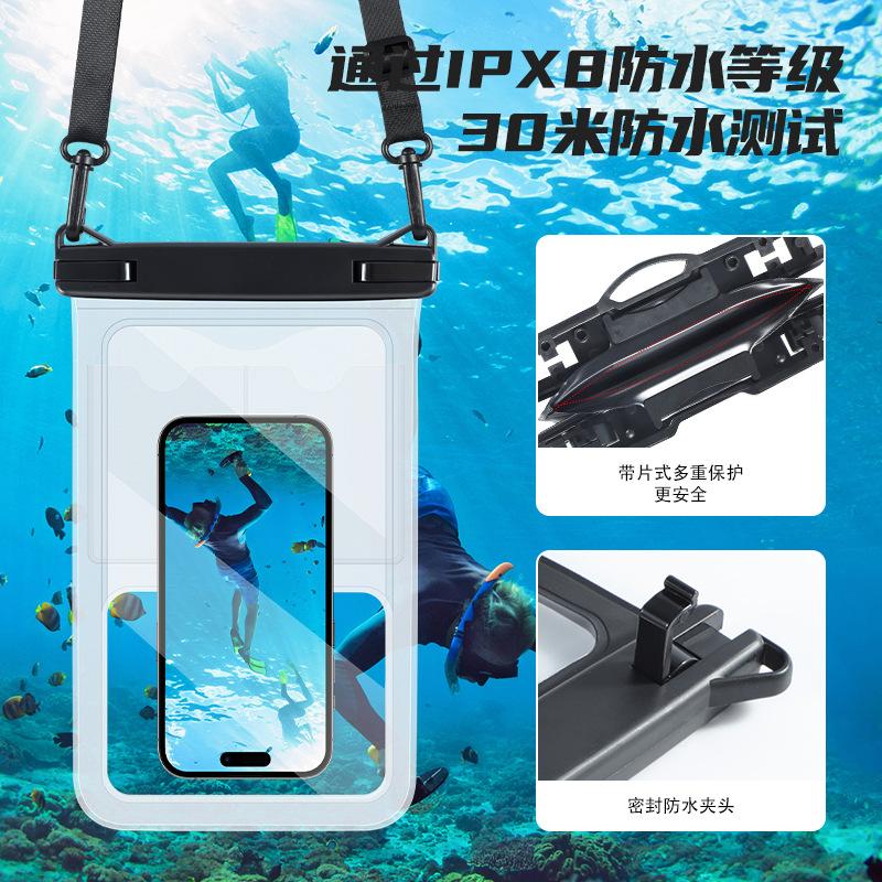 Bolsa interior doble impermeable para teléfono móvil, bolsa grande para natación, cuello cruzado, a la deriva, bolsa de almacenamiento de PVC impermeable para buceo con pantalla táctil.