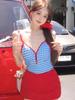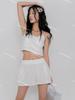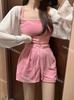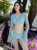 Traje de baño de estilo coreano simple, retro, con contraste de color en los hombros, color sólido, ajustado y dividido, para mujer, estilo conservador de verano.