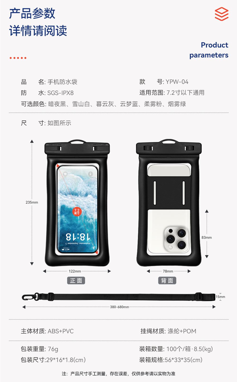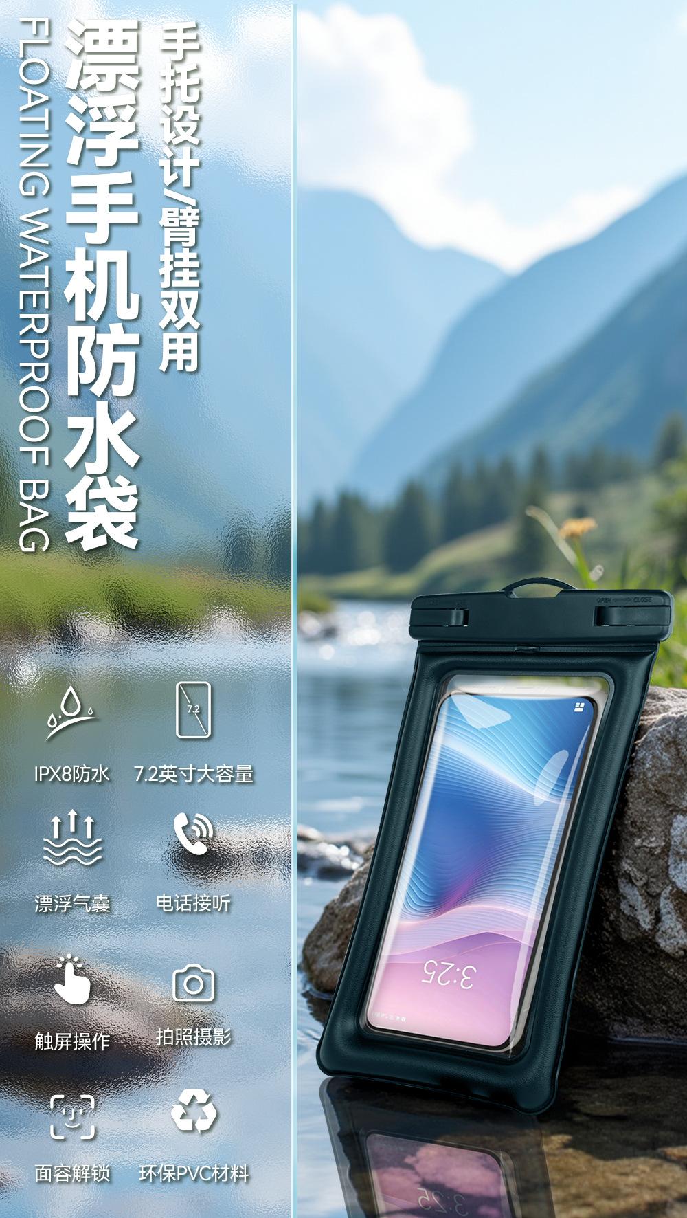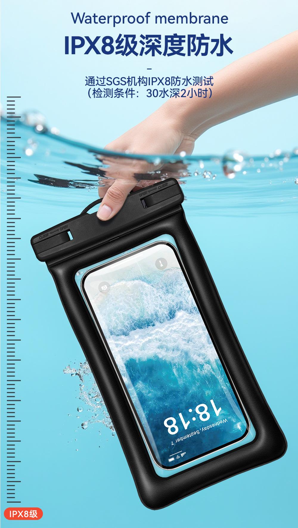 Funda impermeable para teléfono móvil inflable transfronteriza con pantalla táctil, bolsa impermeable de protección ambiental, tamaño ampliado, bolsa impermeable flotante para teléfono móvil
