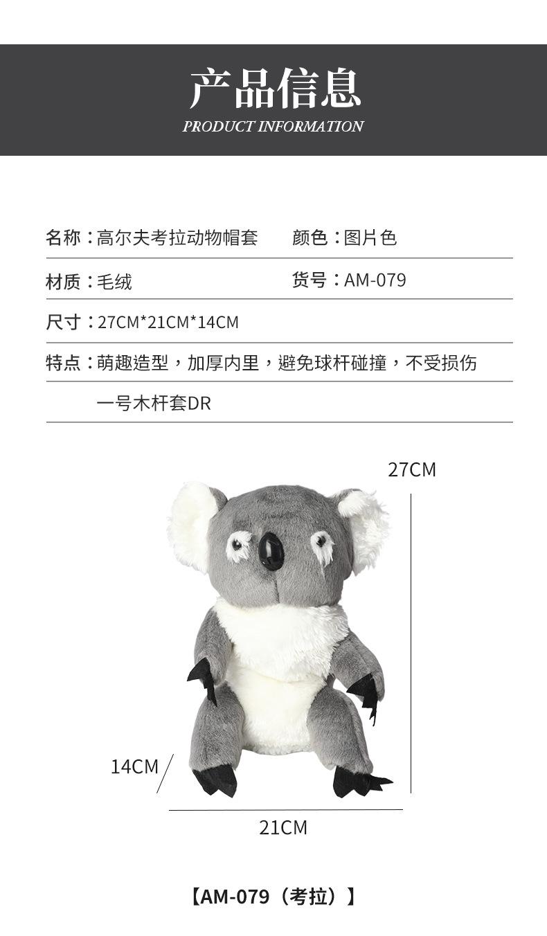 Lindo dibujo de koala de golf con funda para palo de golf de varios animales.. 1 tapa de poste de madera cubierta de protección de la cabeza del palo cubierta del palo