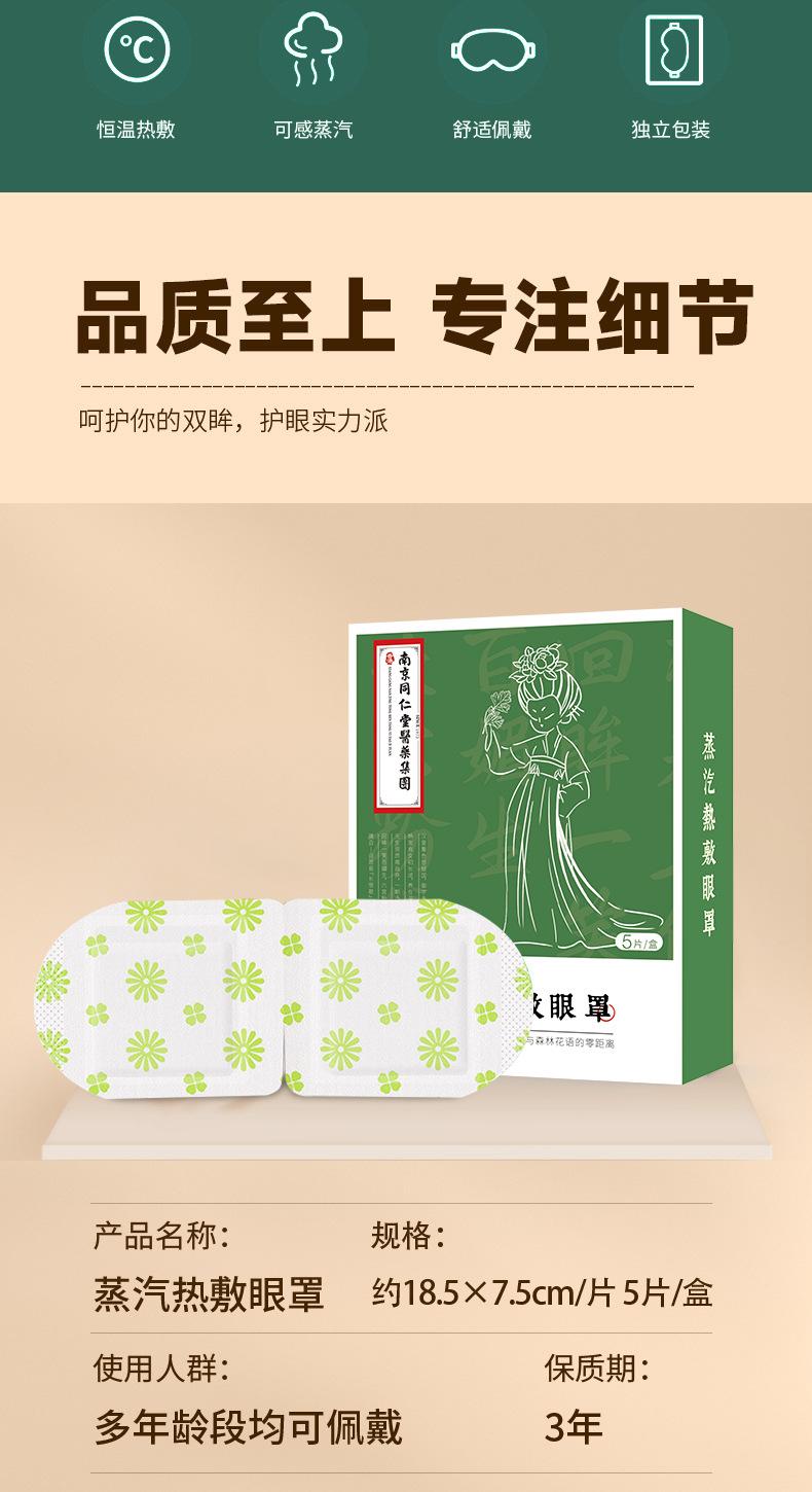 Grupo Farmacéutico Nanjing Tongrentang Mascarilla de Ojos de Compresa Caliente de Vapor Mascarilla de Ojos de Ajenjo Auto-Calentable Parche para Ojos Bloqueador de Luz Venta al por Mayor