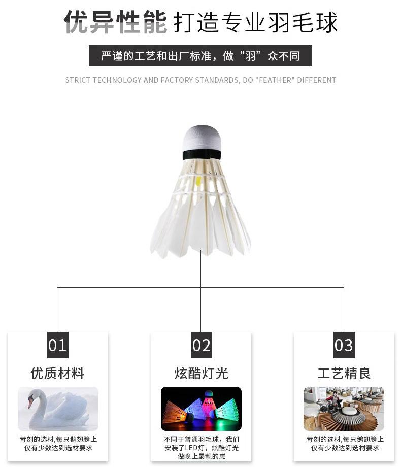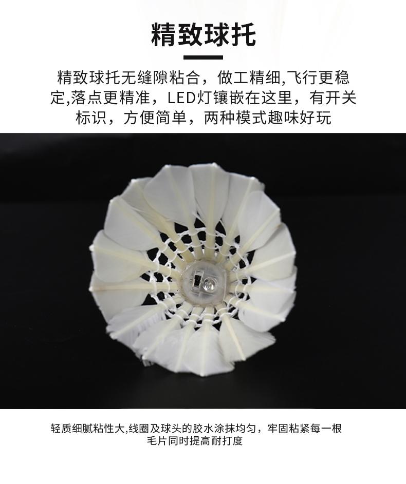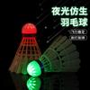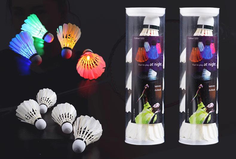 Bádminton luminoso a prueba de viento con luces para entrenamiento al aire libre, pluma de ganso fluorescente nocturna, bola luminosa duradera de 4 barriles