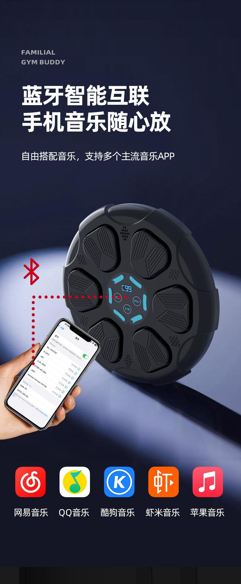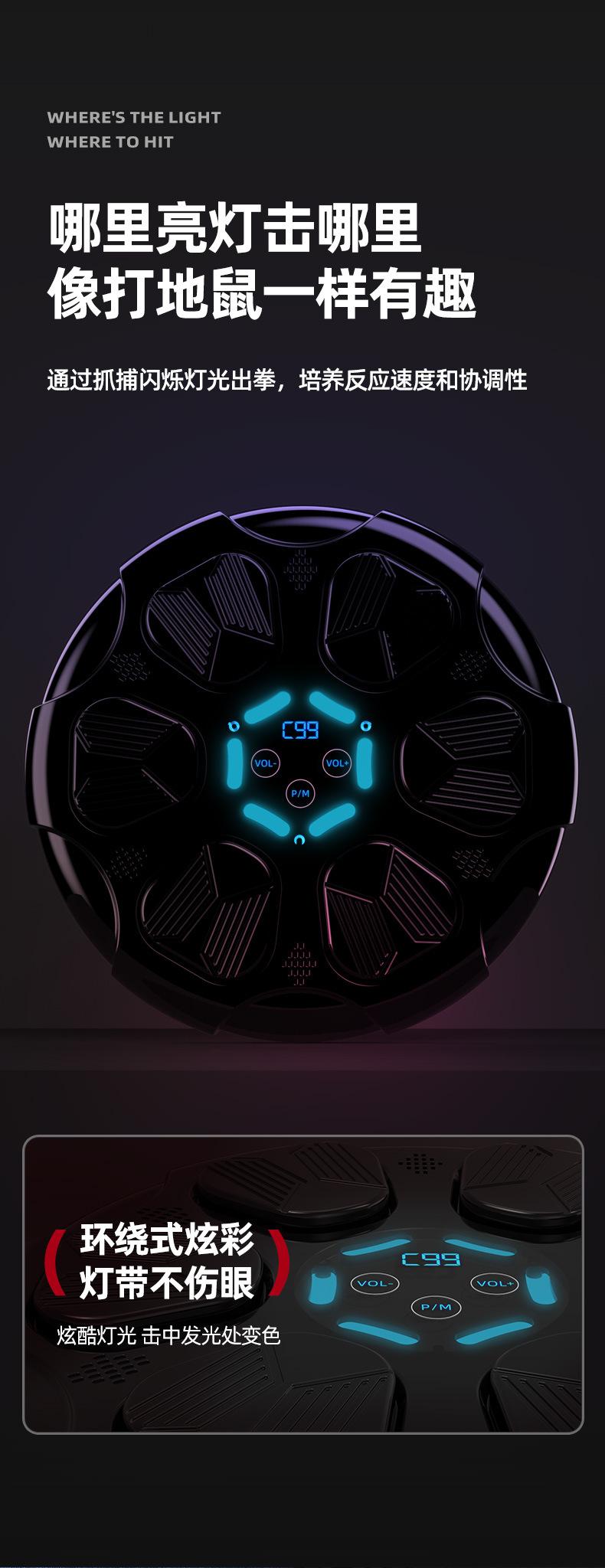 Máquina de boxeo con Bluetooth para el hogar, luz de fitness, entrenador de boxeo con música, objetivo de boxeo de pared para niños.