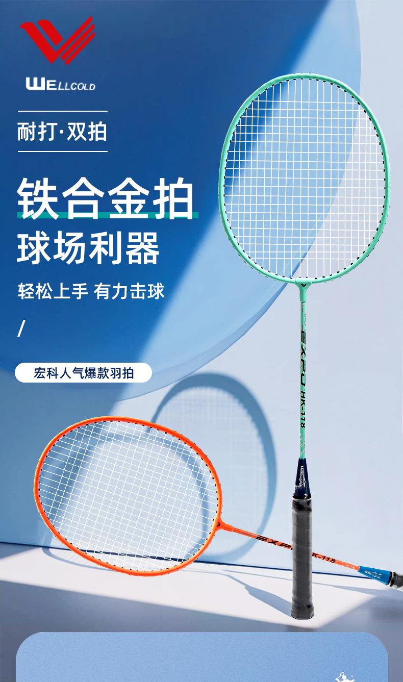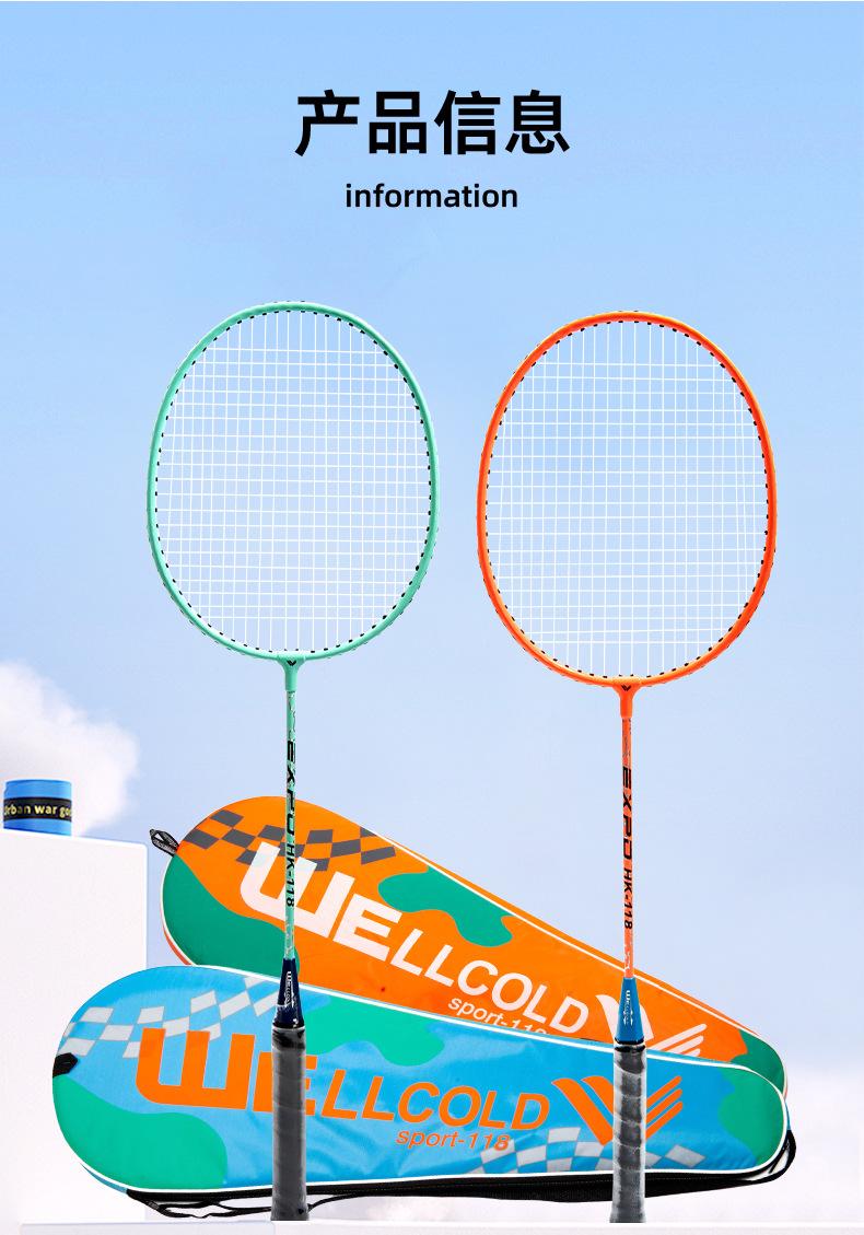 118 iron alloy orange double racket + racquet bag, 118 iron alloy green double racket + racket bag