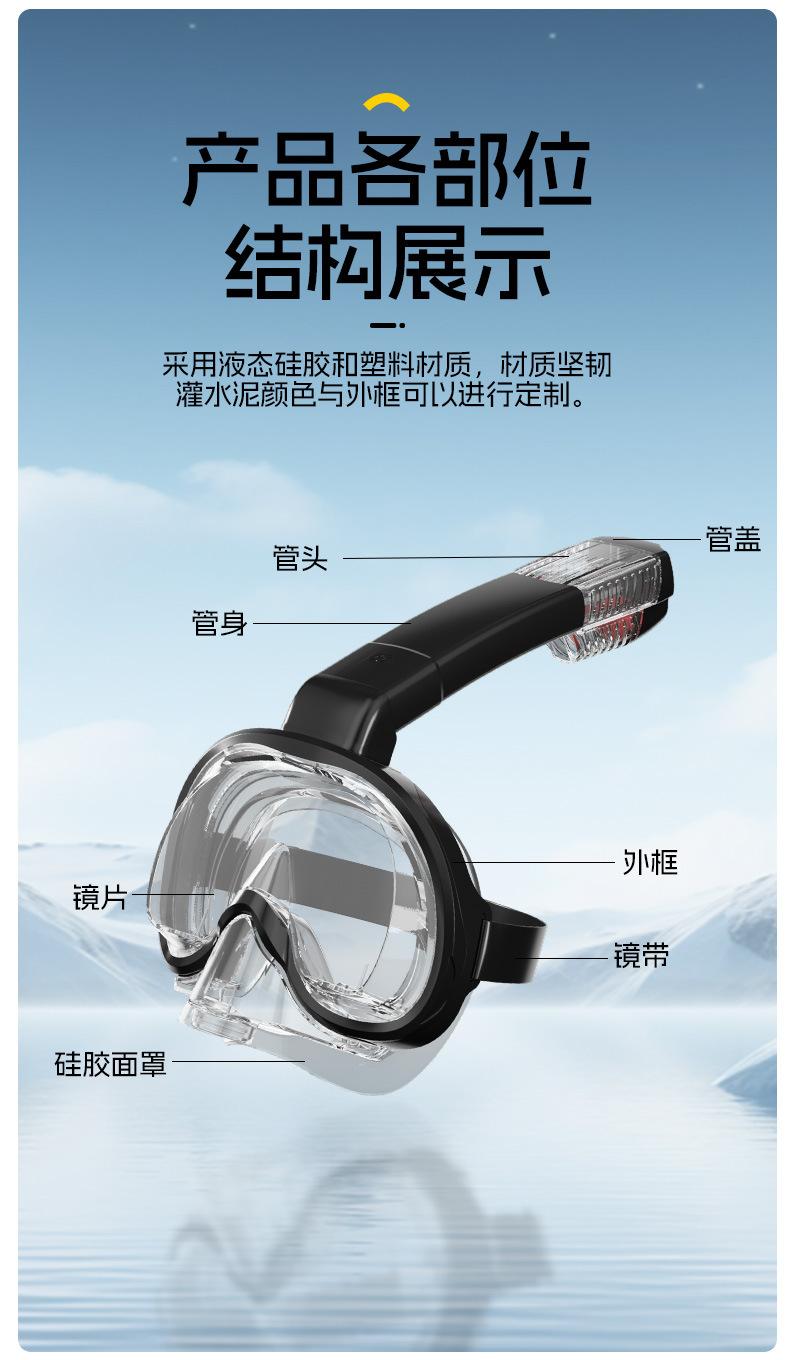 Compra Nueva Máscara de Snorkel de Media Cara Impermeable Antivaho Completamente Seca Impermeable Silicona Líquida Máscara Completa Gafas de Buceo al por mayor en Joom.pro