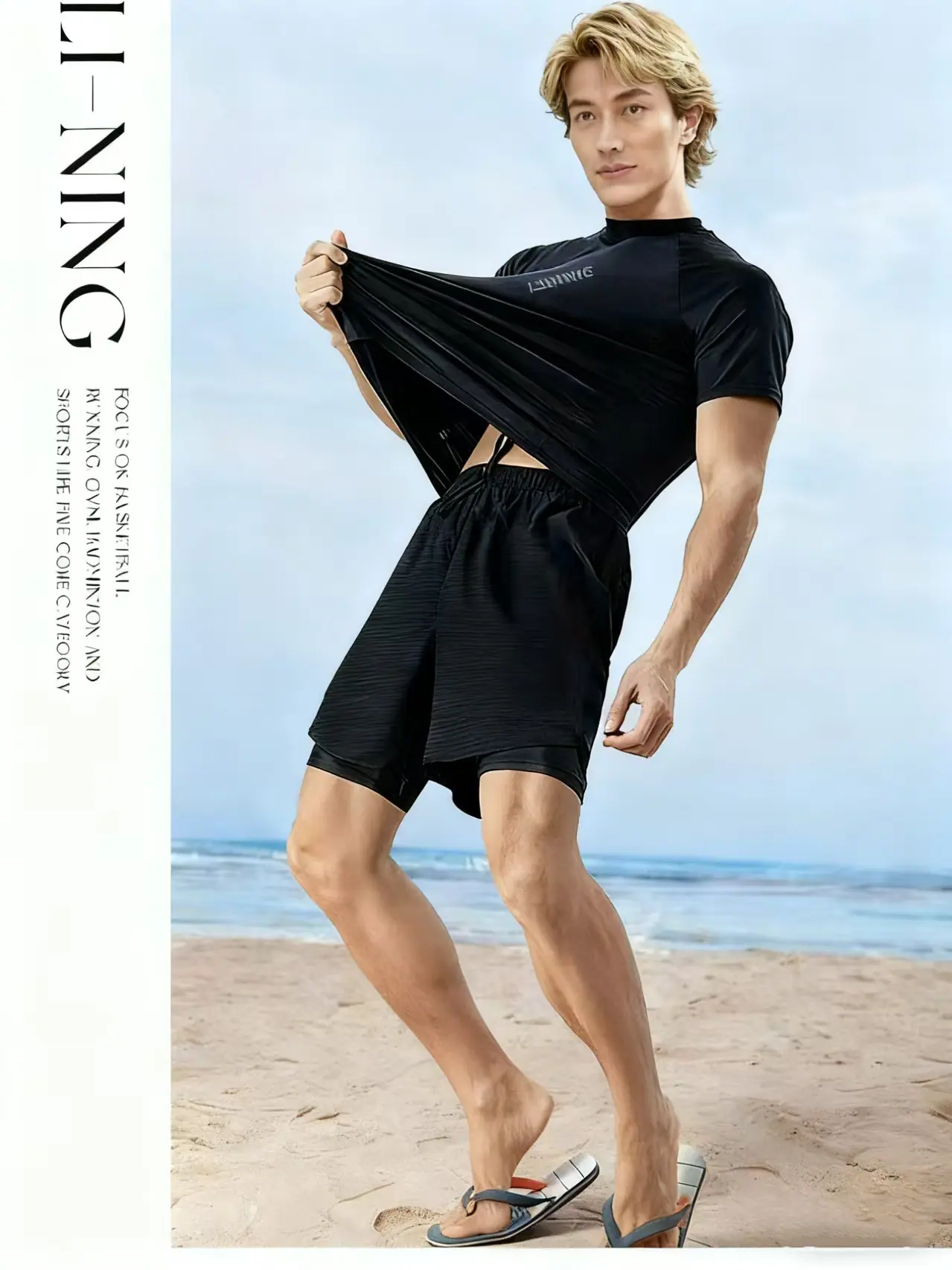 Traje de Baño para Hombre Profesional Anti-Vergüenza Talla Grande Holgado Doble Capa Traje de Baño Protector Solar Aguas Termales Cuerpo Completo Traje de Baño para Hombre