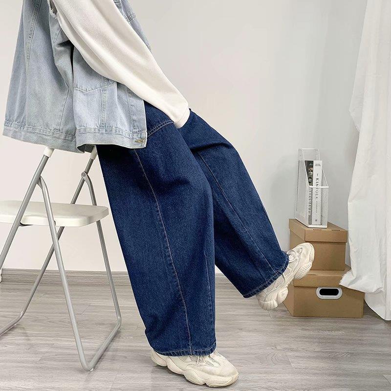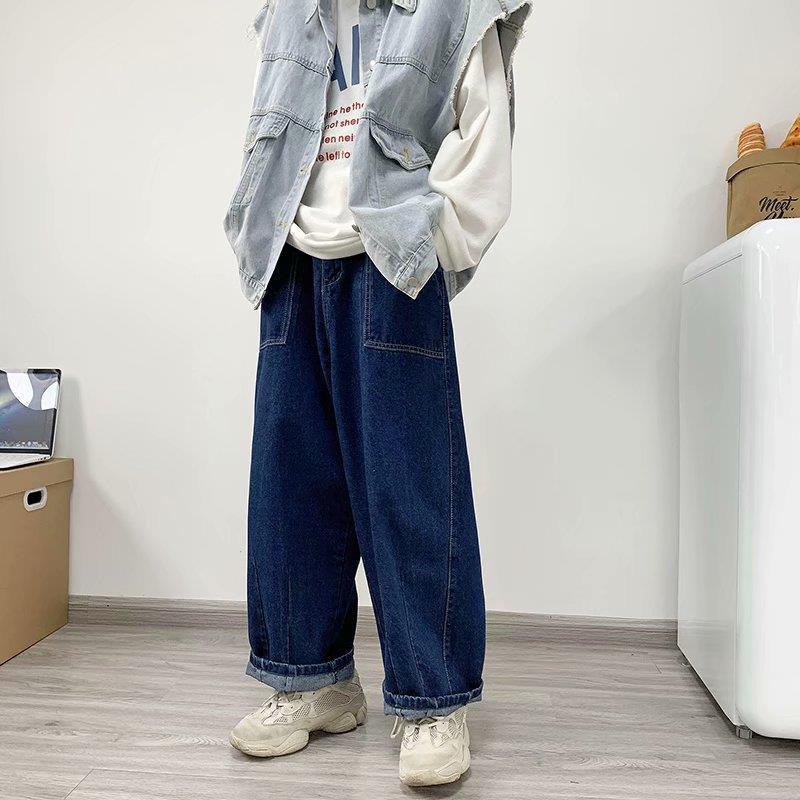 Pantalones de mezclilla hip-hop de otoño e invierno para hombre, estilo coreano, modernos, holgados, rectos, con colgante, de pierna ancha, retro, para barrer el piso