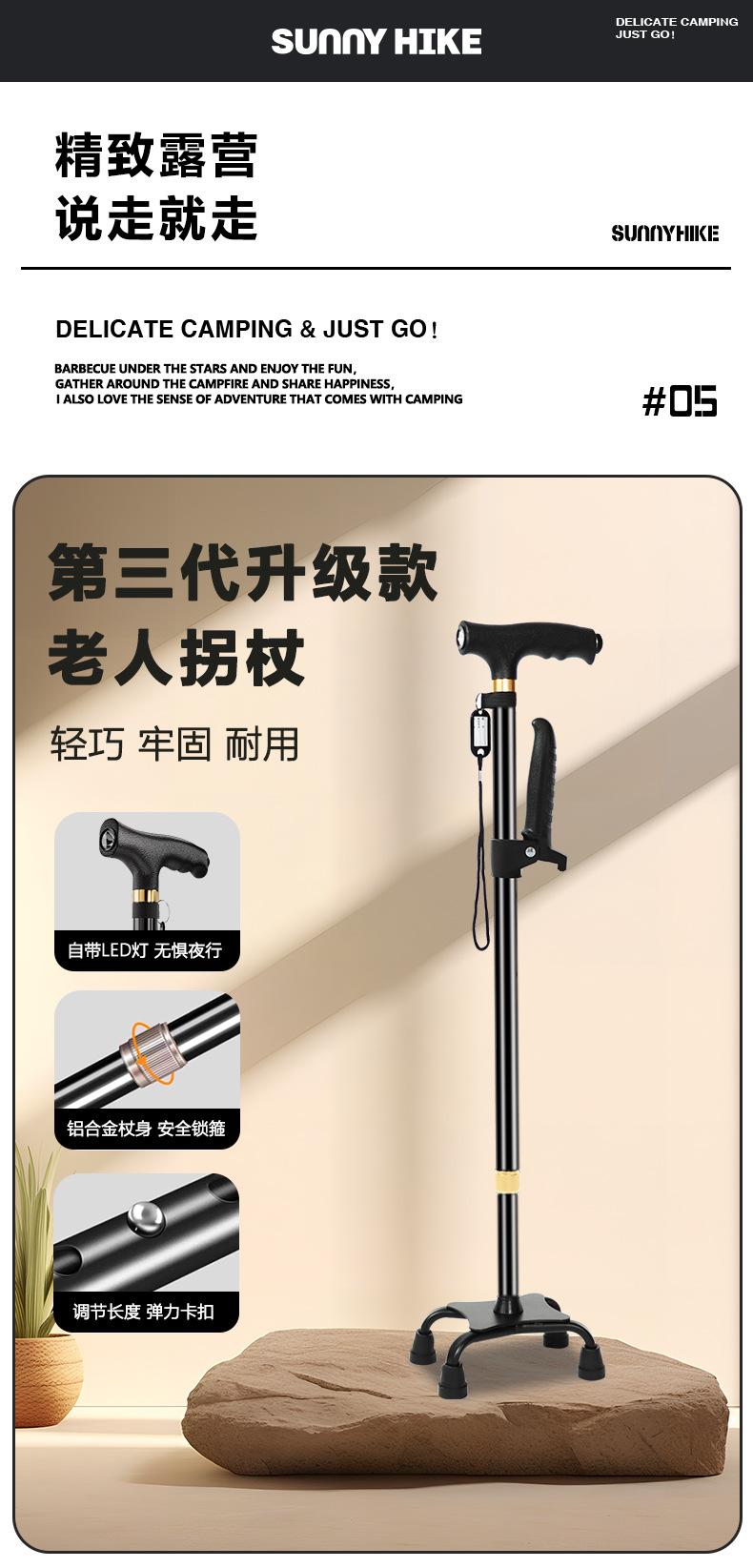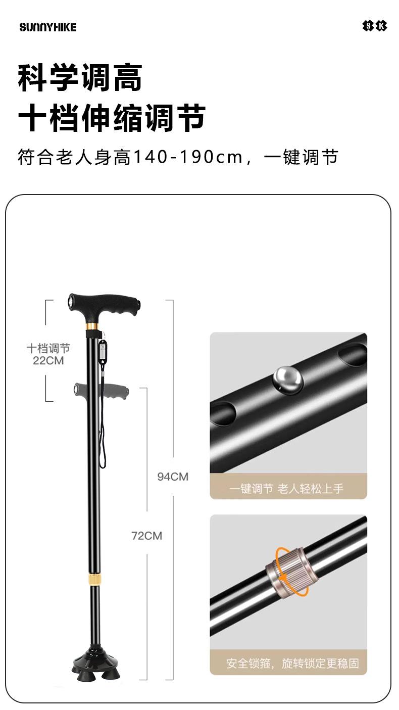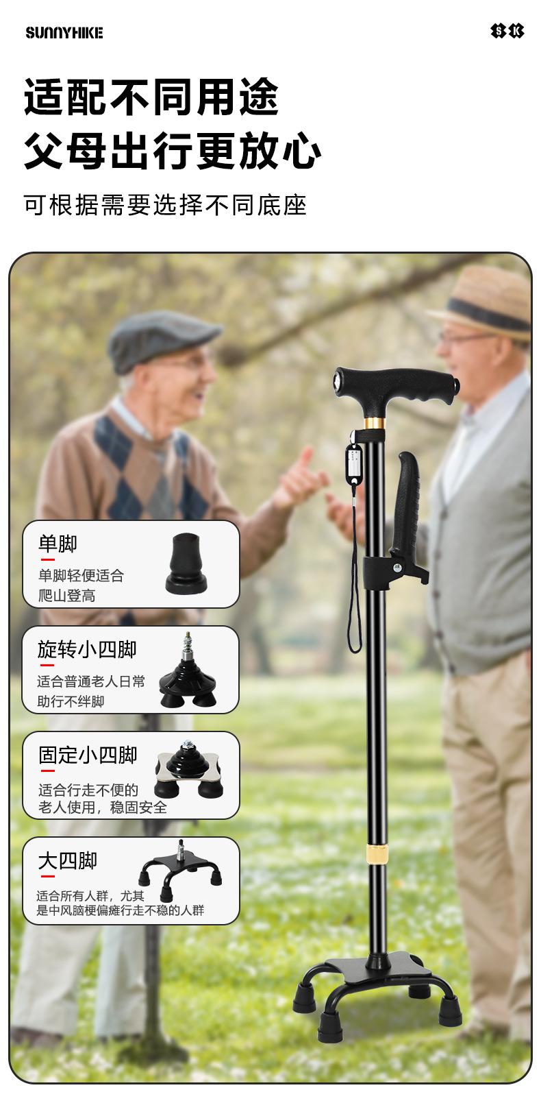 Bastón de aleación de aluminio para personas mayores, multifuncional, telescópico, antideslizante, ligero, para rehabilitación, con reposabrazos