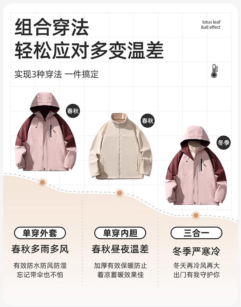 Chaqueta Funcional para Exterior a Prueba de Tres Cosas de la NASA para Mujer Tres en uno Primavera Otoño Invierno con Forro Polar Engrosado con Capucha Traje de Montañismo