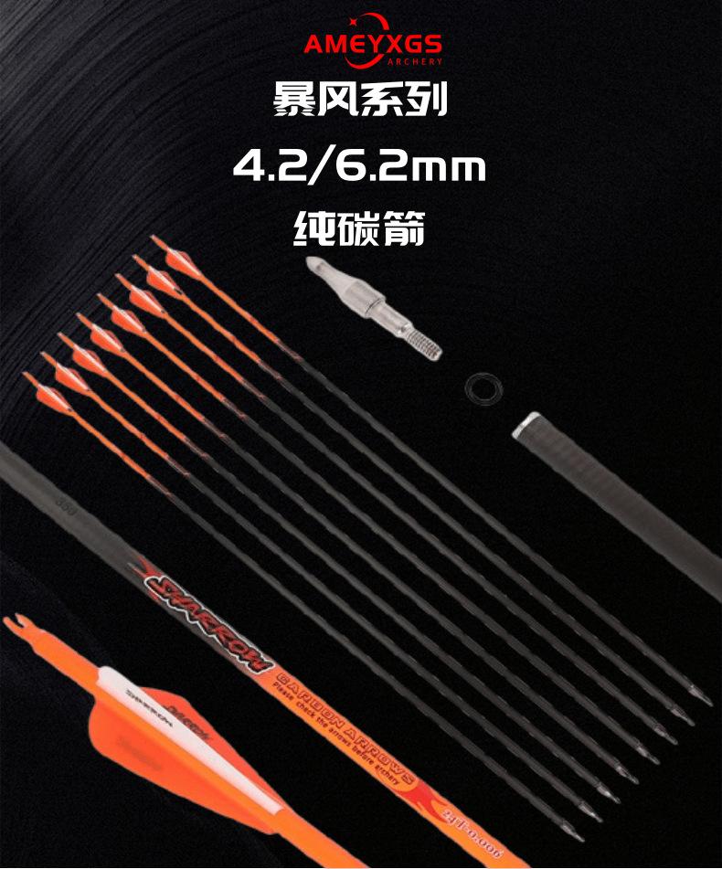 AMEYXGS - Flecha de carbono puro con pluma de gota de escudo de 4,2/6,2 mm, aleación, para caza, recurvo, competitivo y de alta calidad