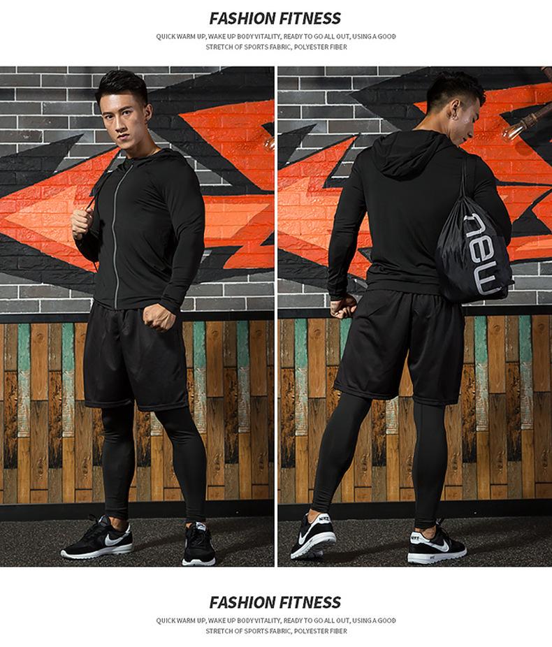 Ropa de fitness para hombre, traje de secado rápido, conjunto de cuatro piezas para correr, deportes, baloncesto, entrenamiento matutino, gimnasio, otoño e invierno.