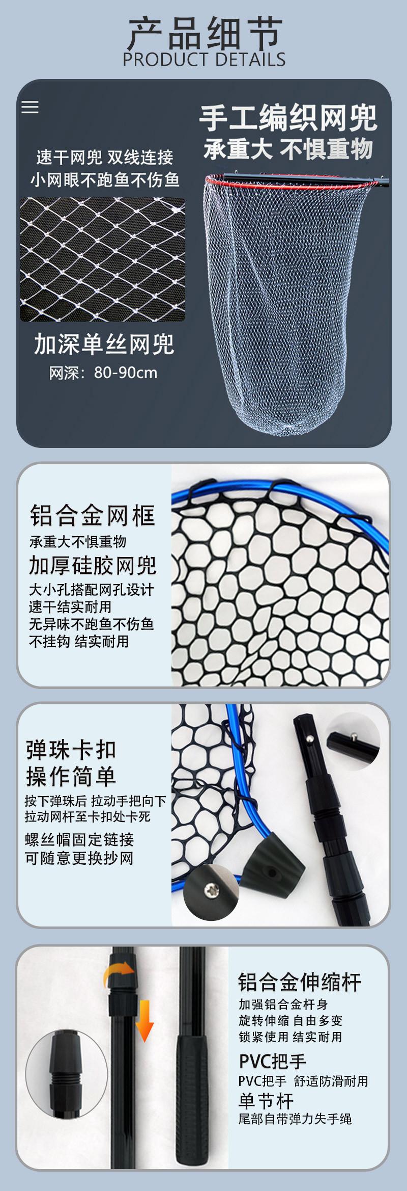 Red de copia Luya aleación de aluminio red de copia caña telescópica de múltiples secciones bolsa de red de silicona red de pesca marítima red de copia de mano portátil para objetos grandes