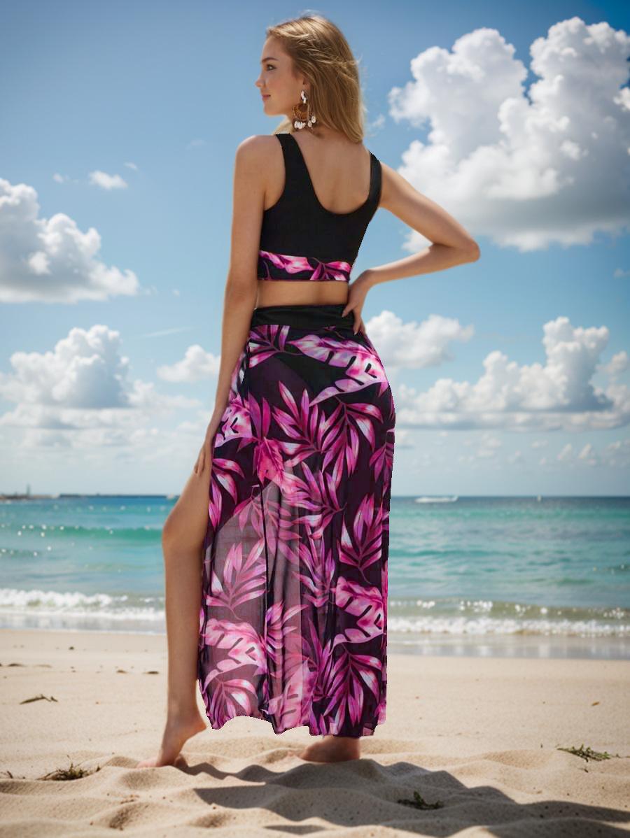 Traje de baño 2024 nuevo, bikini de playa sexy europeo y americano, traje de baño de malla cruzada, vestido largo, bikini de tres piezas para mujer