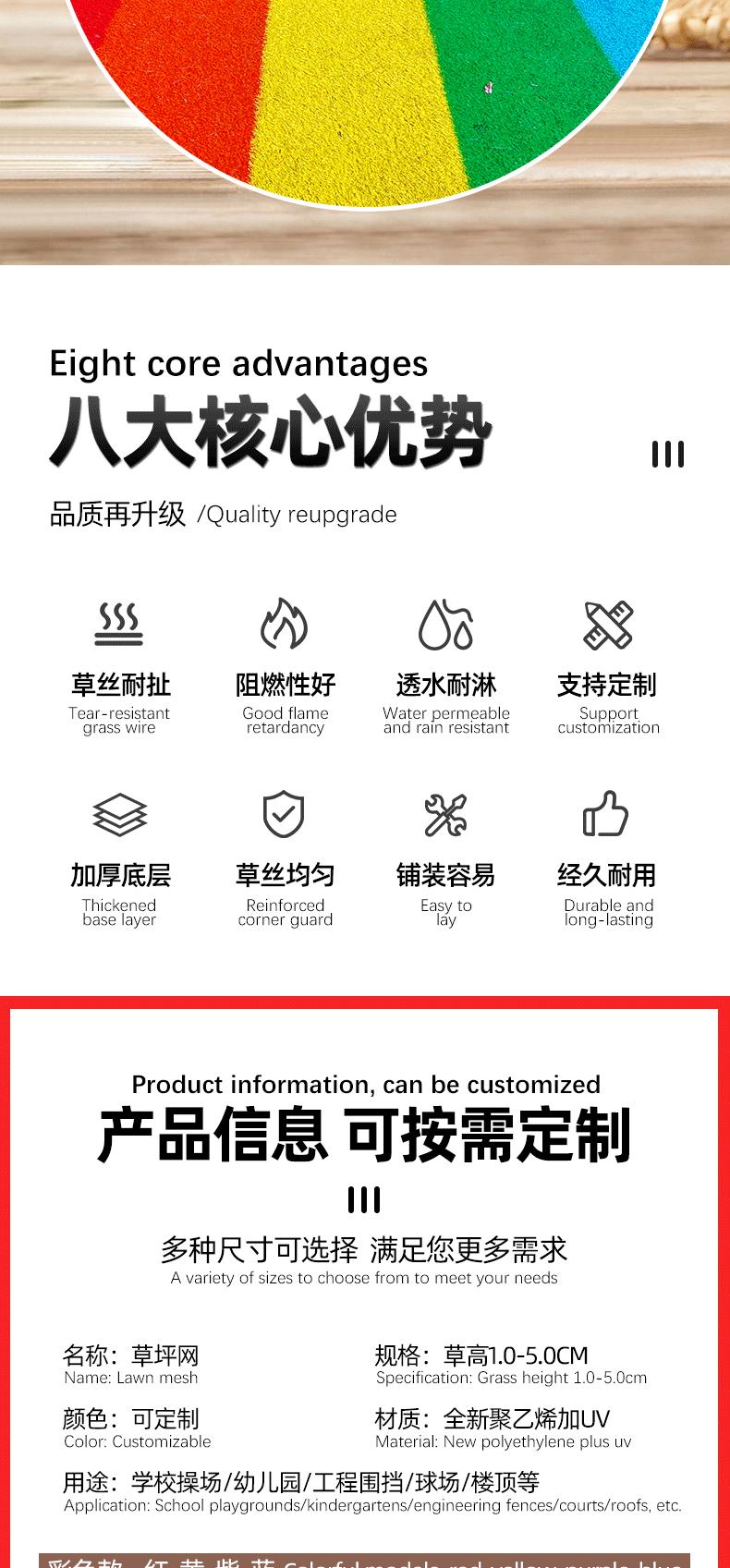 Césped artificial de simulación para jardín de infantes, pista de arcoíris, alfombra artificial de plástico para exteriores, alfombra de colores, césped artificial