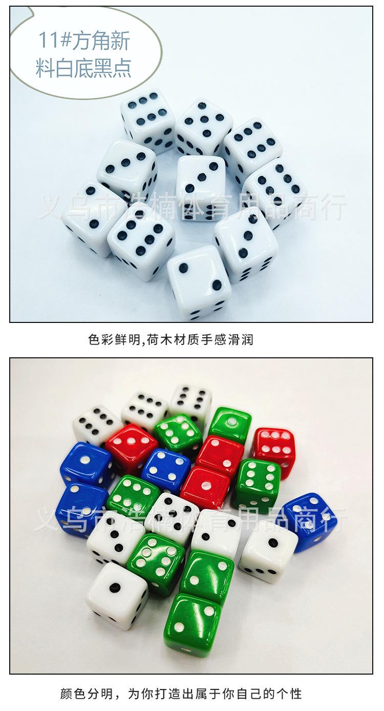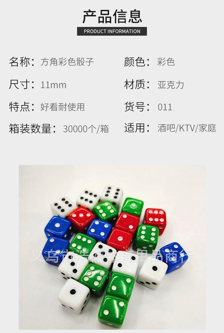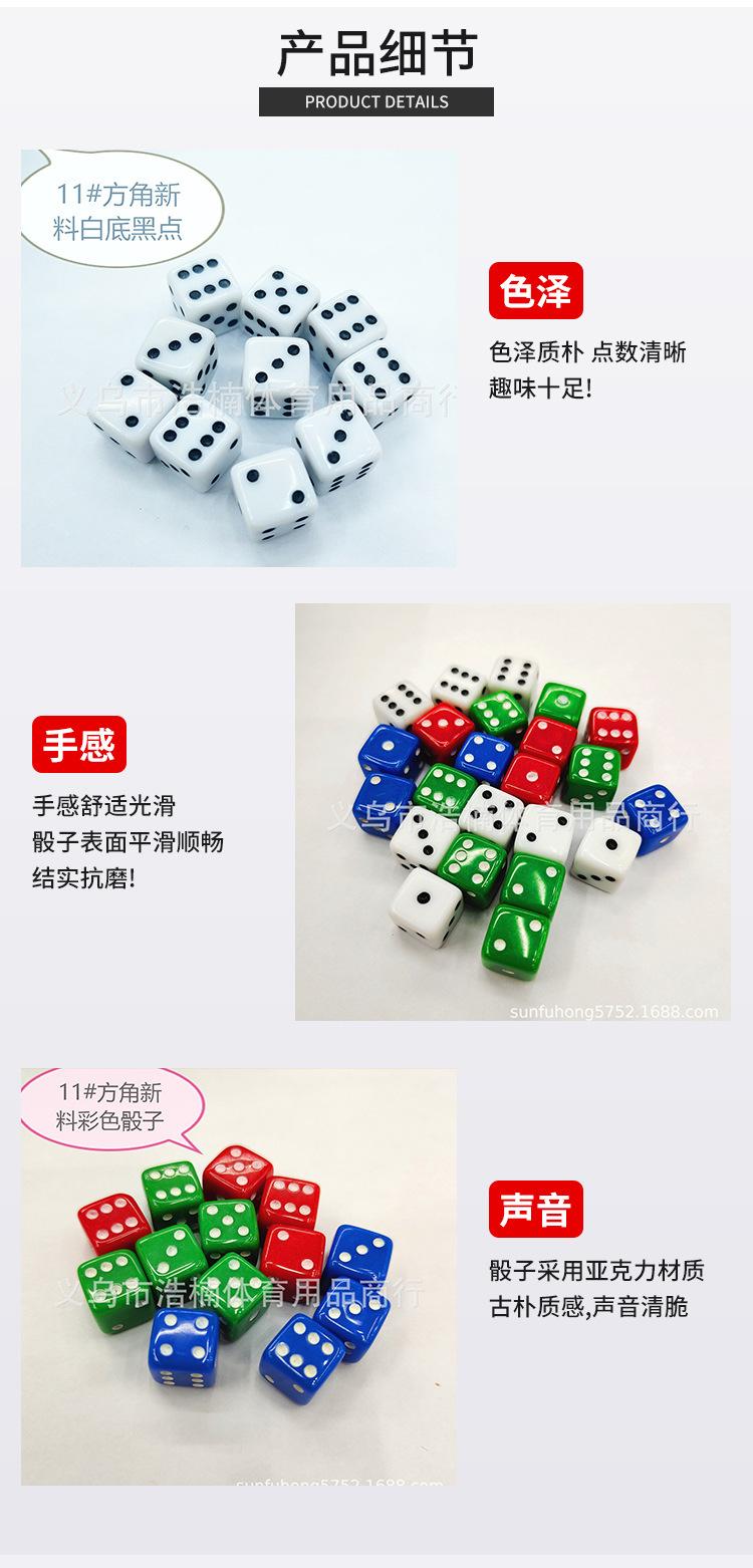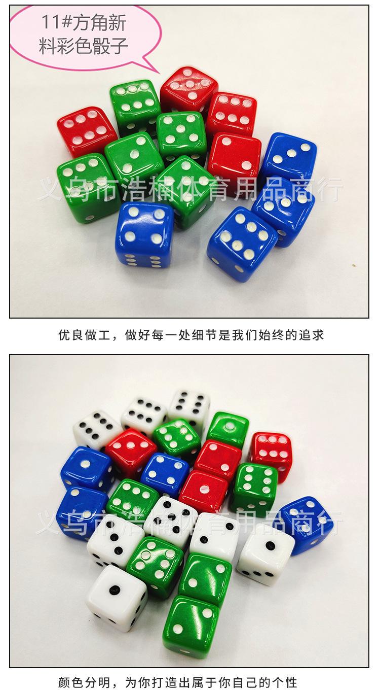 Suministro al por mayor de dados acrílicos de esquina cuadrada de 11 mm, accesorios de juguete, juego de colores, dados grandes a juego