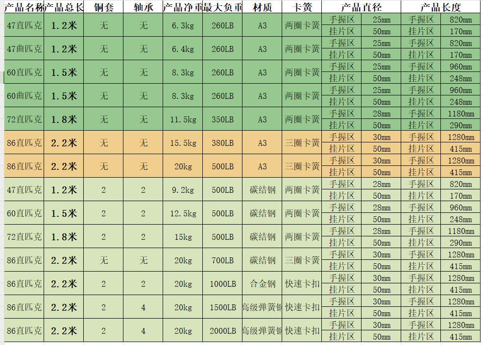 1.2m straight olympic pole (load capacity 260 pounds), 1.2m quao pole (load capacity 260 pounds), 1.2m large q...
