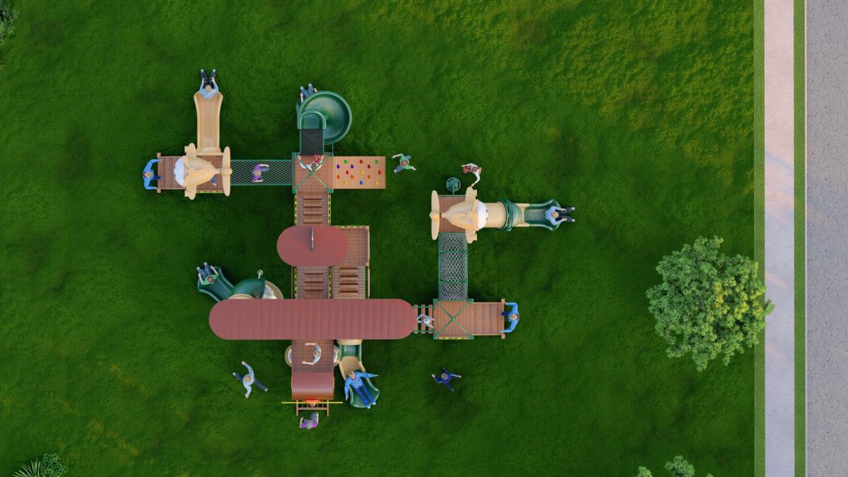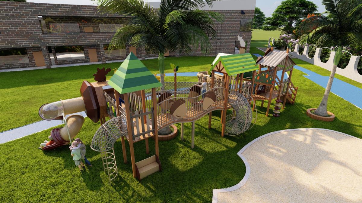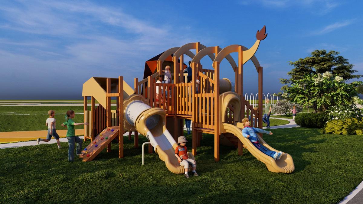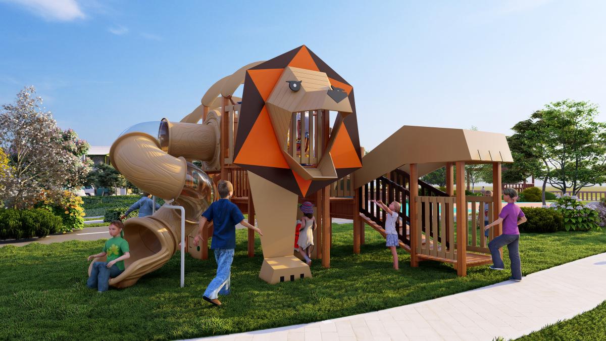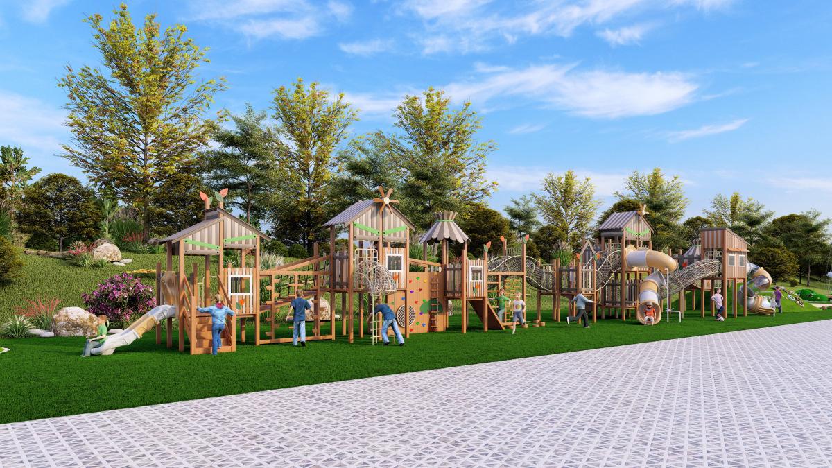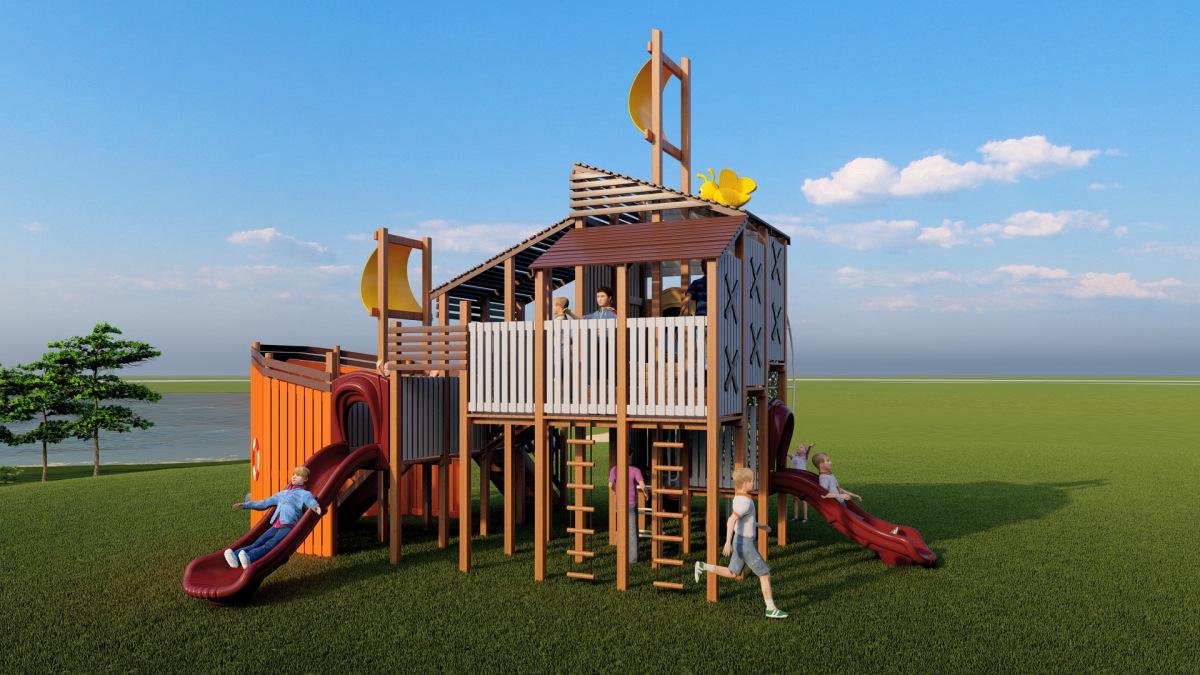 Tobogán de madera de combinación de pelo liso de fábrica para exteriores, gran parque de juguetes para niños, instalaciones comunitarias al aire libre, equipo de entretenimiento
