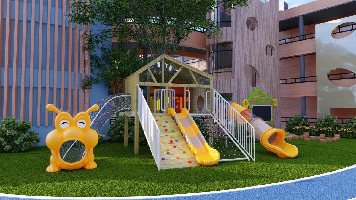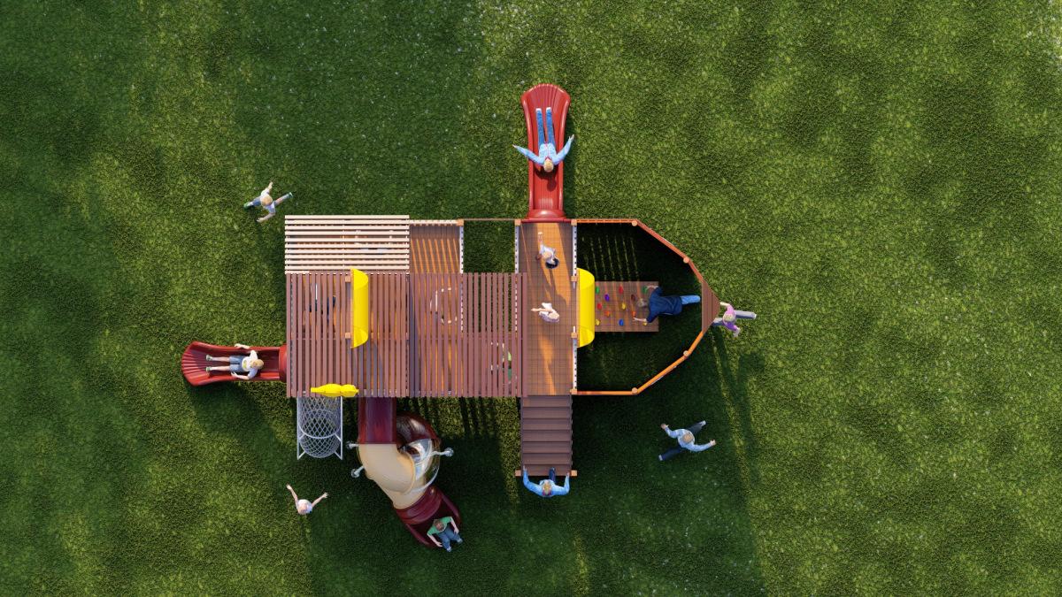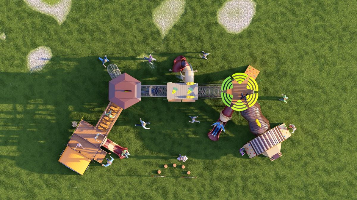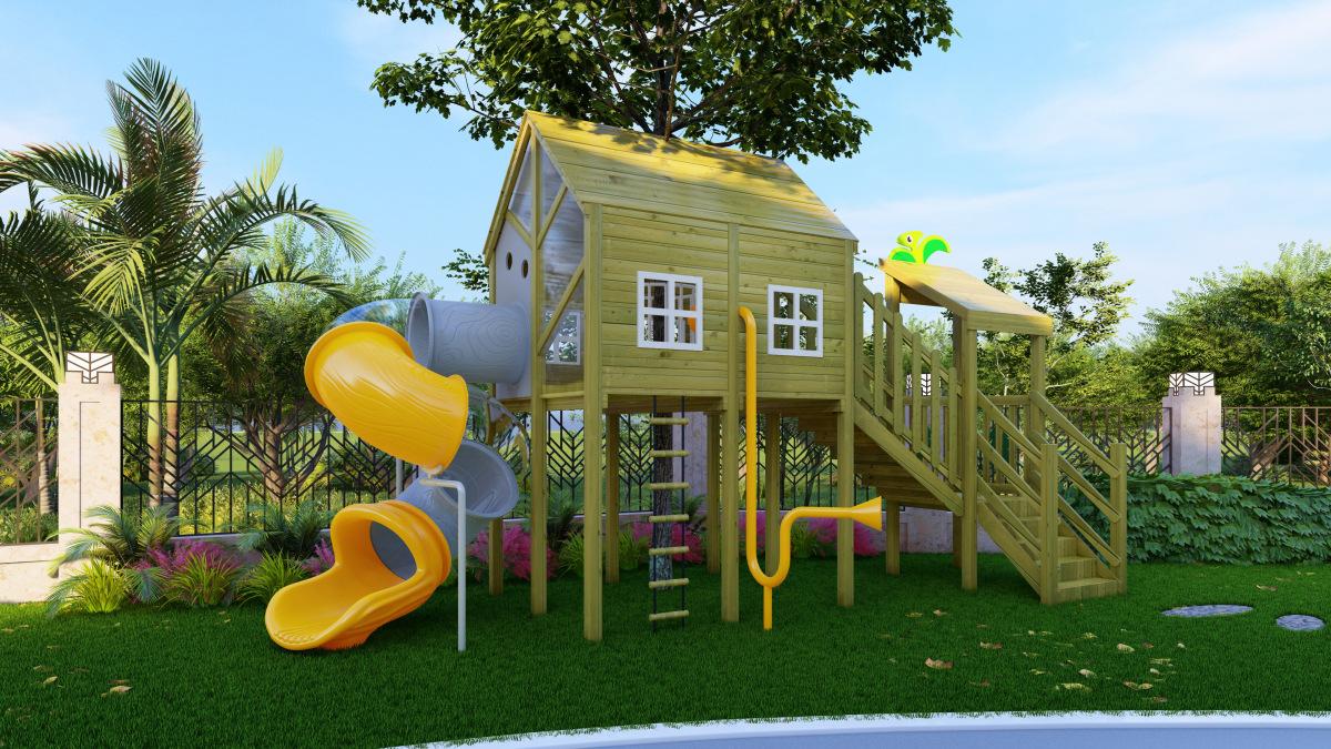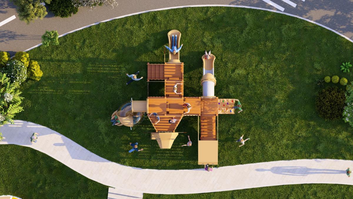 Tobogán de madera de combinación de pelo liso de fábrica para exteriores, gran parque de juguetes para niños, instalaciones comunitarias al aire libre, equipo de entretenimiento