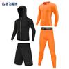 Traje deportivo de fitness para hombre otoño e invierno cálido alta elasticidad ajustado camiseta base pantalones de compresión manga larga cuatro piezas al por mayor