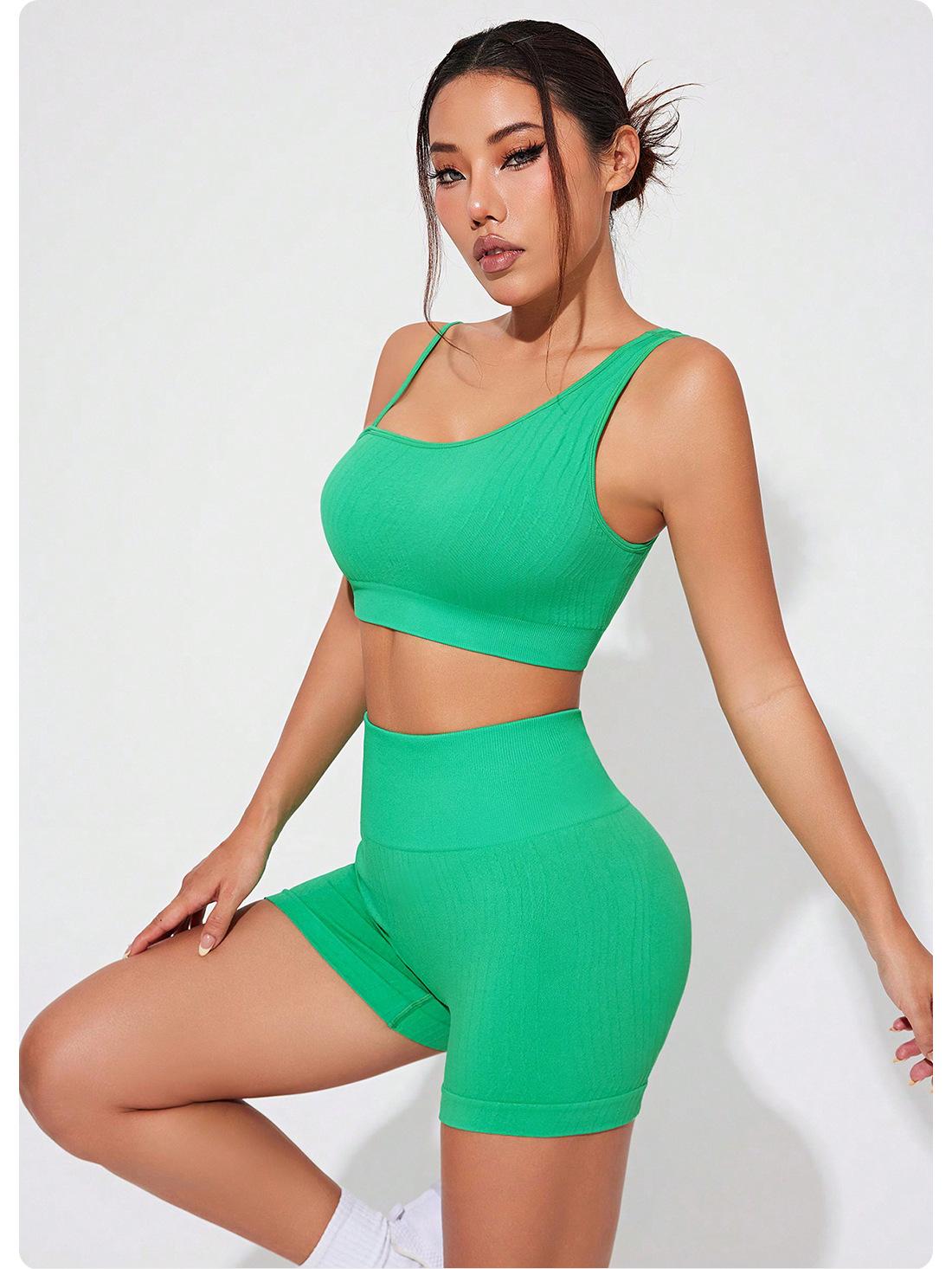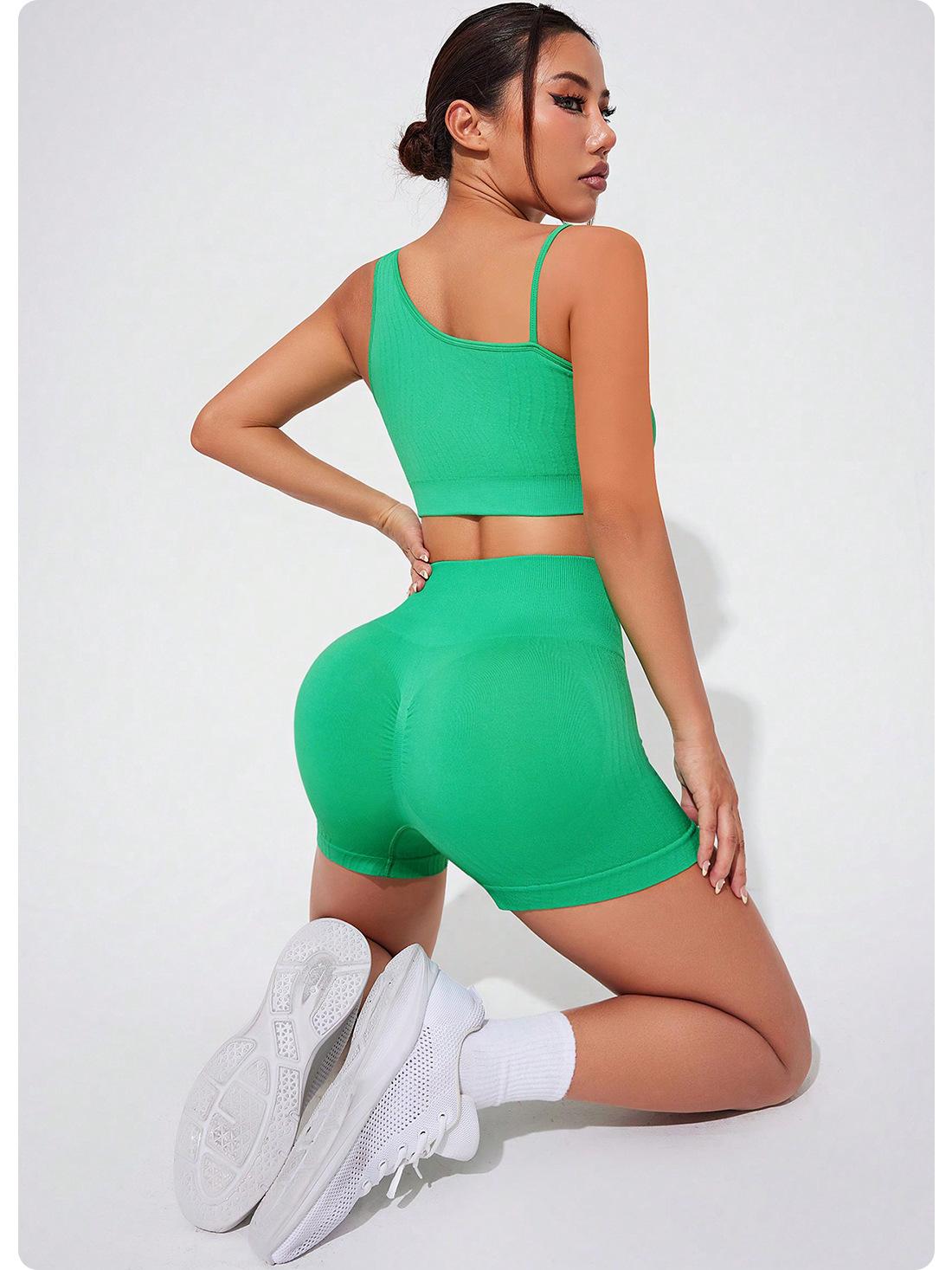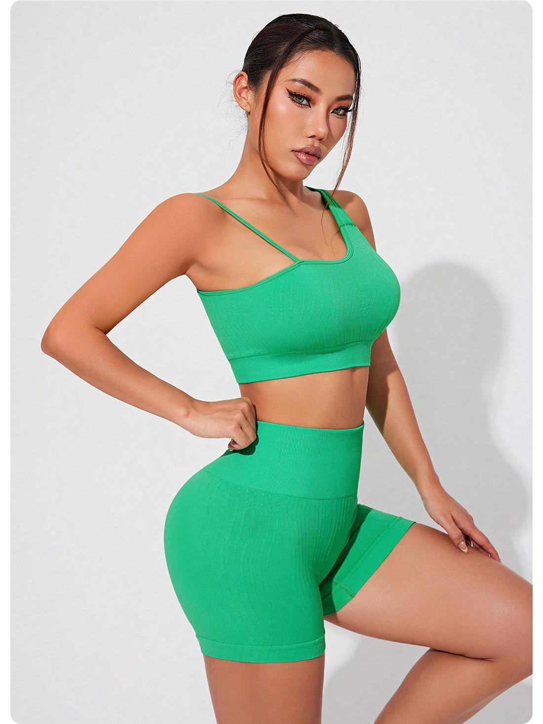 [Modelo de Muestra] Conjunto de Ropa de Yoga Transfronterizo Europeo y Americano Sin Costuras Fitness Deportivo Chaleco de Yoga de Cintura Alta Shorts de Yoga