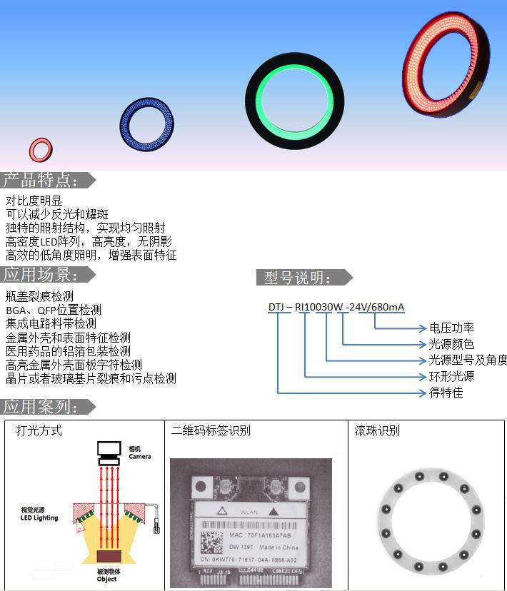 Cámara de visión artificial industrial automática identificación de componentes de apariencia detección posicionamiento serie de fuente de luz de anillo