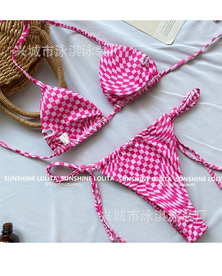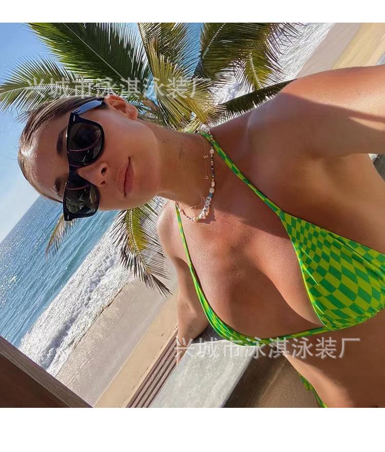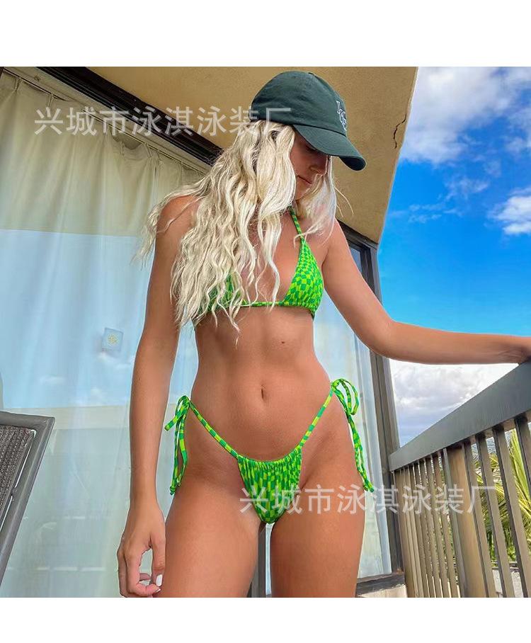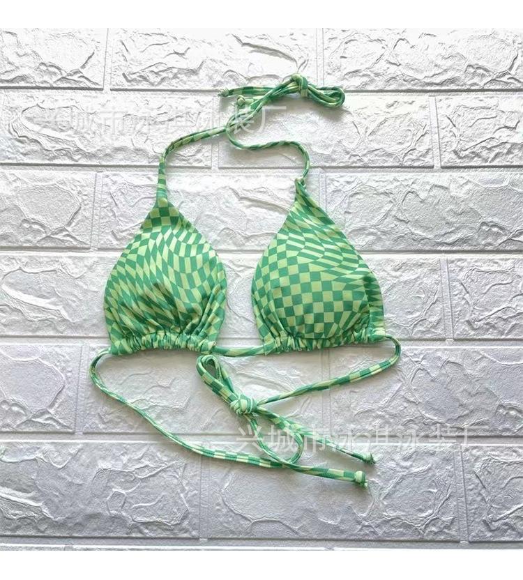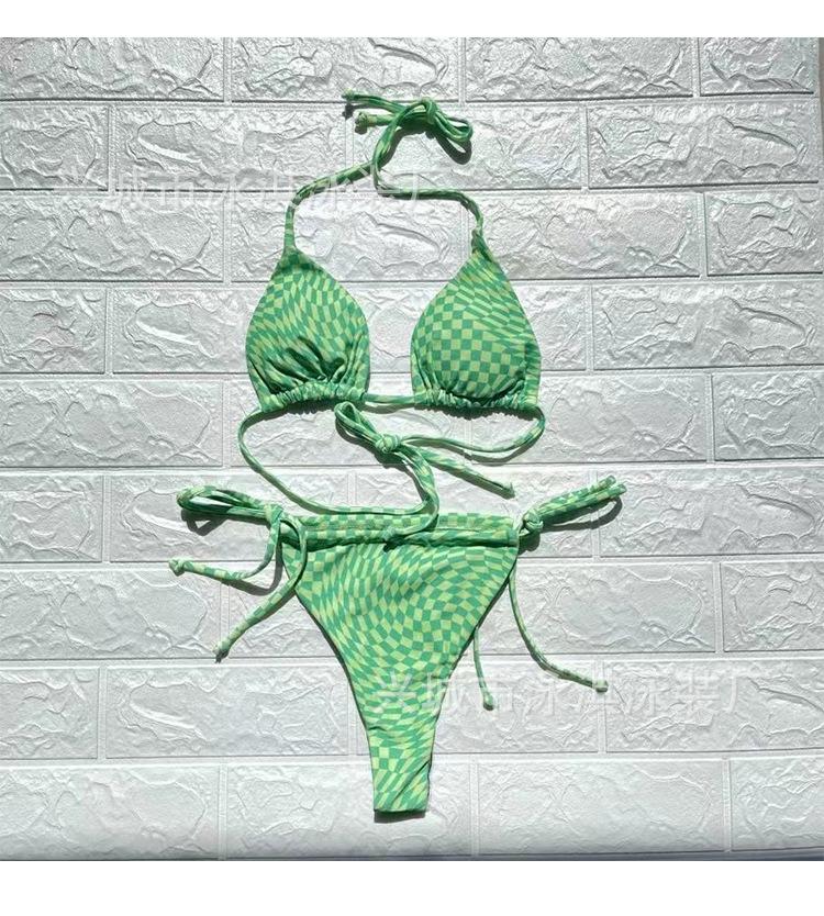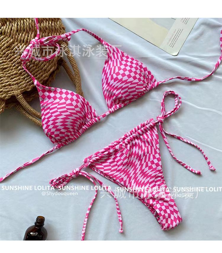 Bikini de tres puntos de deseo puro europeo y americano transfronterizo, con tirantes, sin espalda, sexy, dividido, traje de baño de dos piezas para aguas termales para mujer