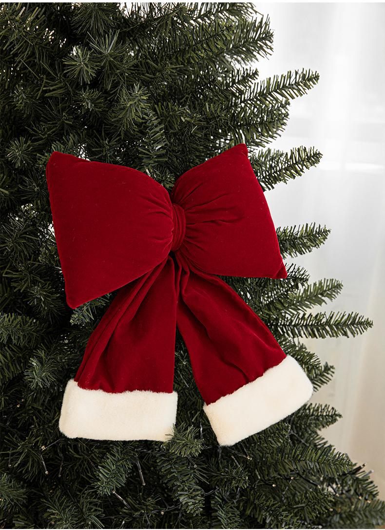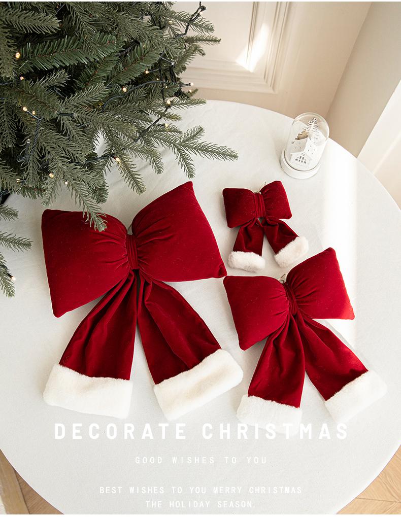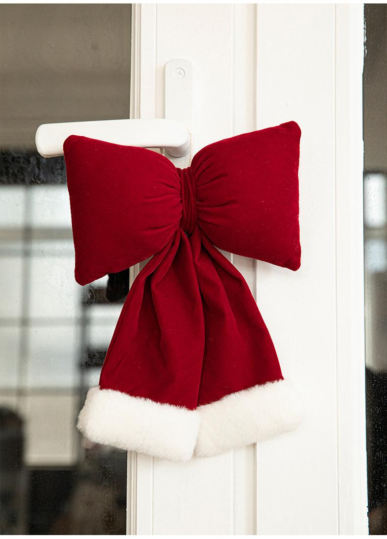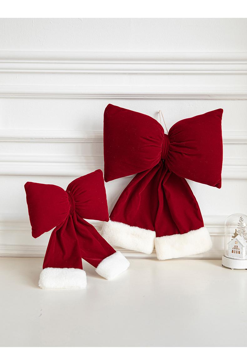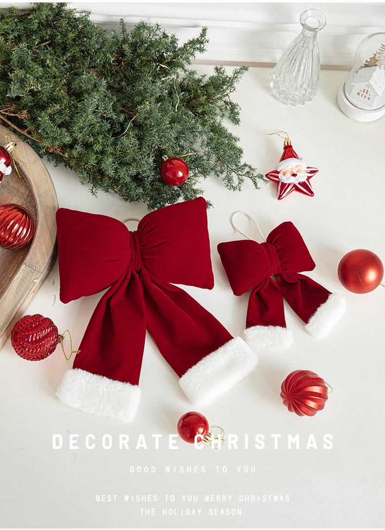 Adornos navideños transfronterizos con lazo de terciopelo rojo vino, colgante para árbol de Navidad, diseño de escena de ventana de centro comercial