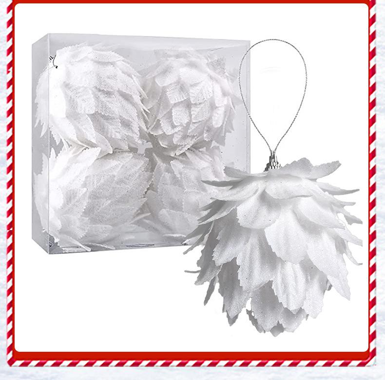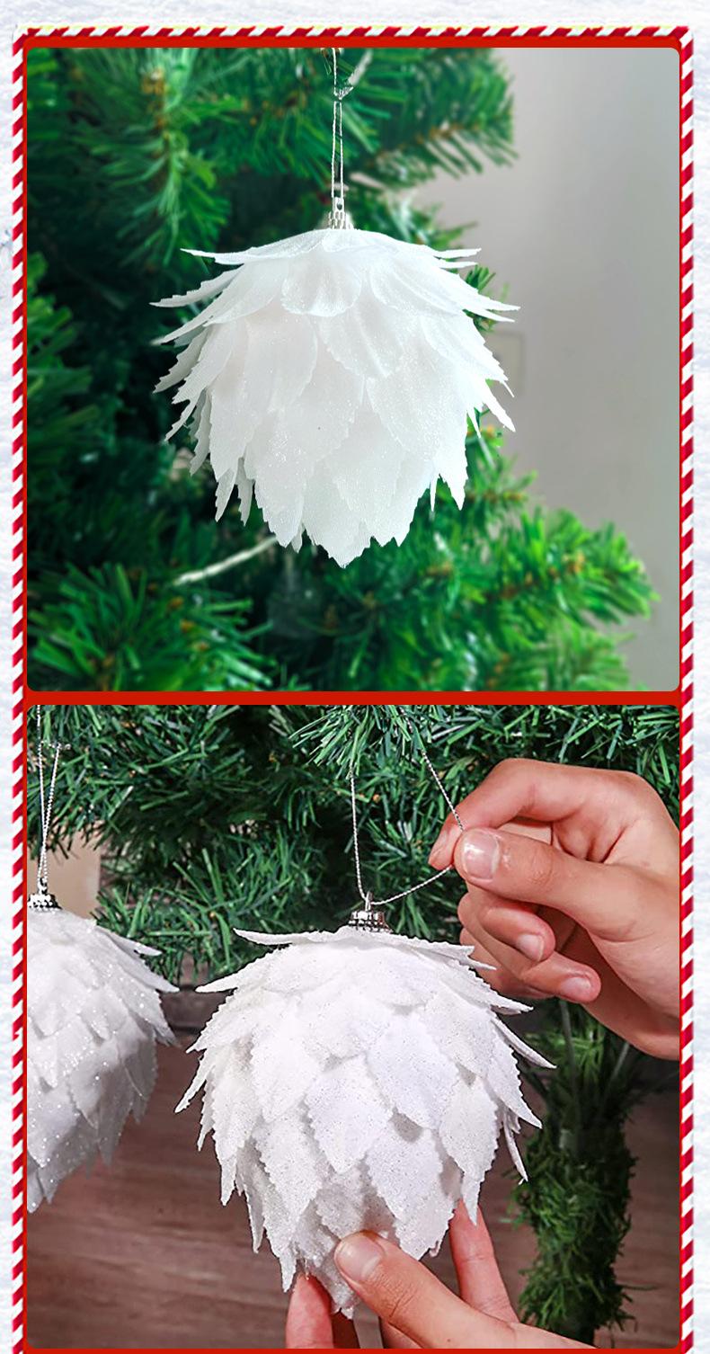 Adornos navideños de bolas de sauce, colgante para árbol de Navidad, bola navideña de espuma de pétalos blancos, adornos colgantes de bolas navideñas