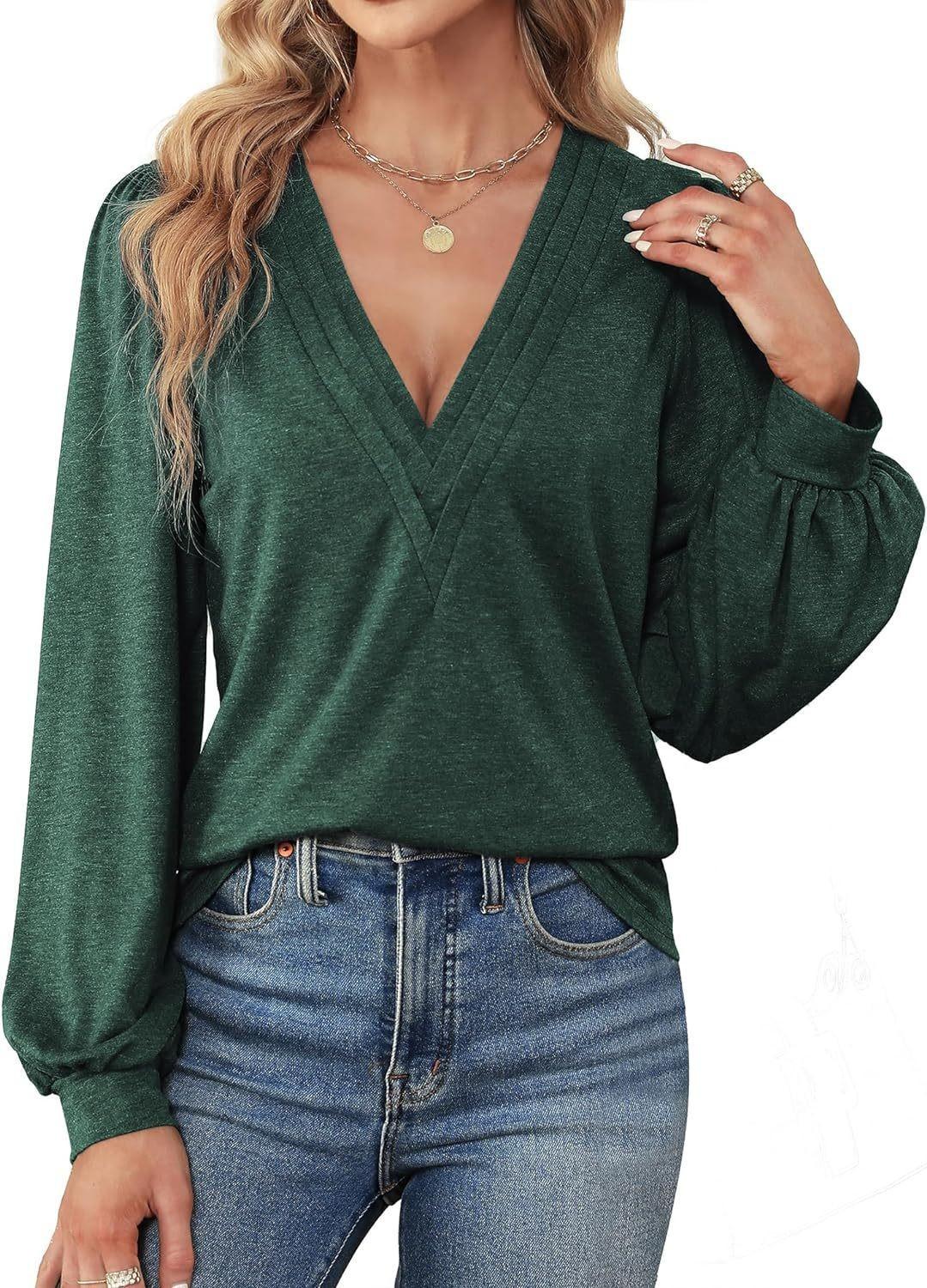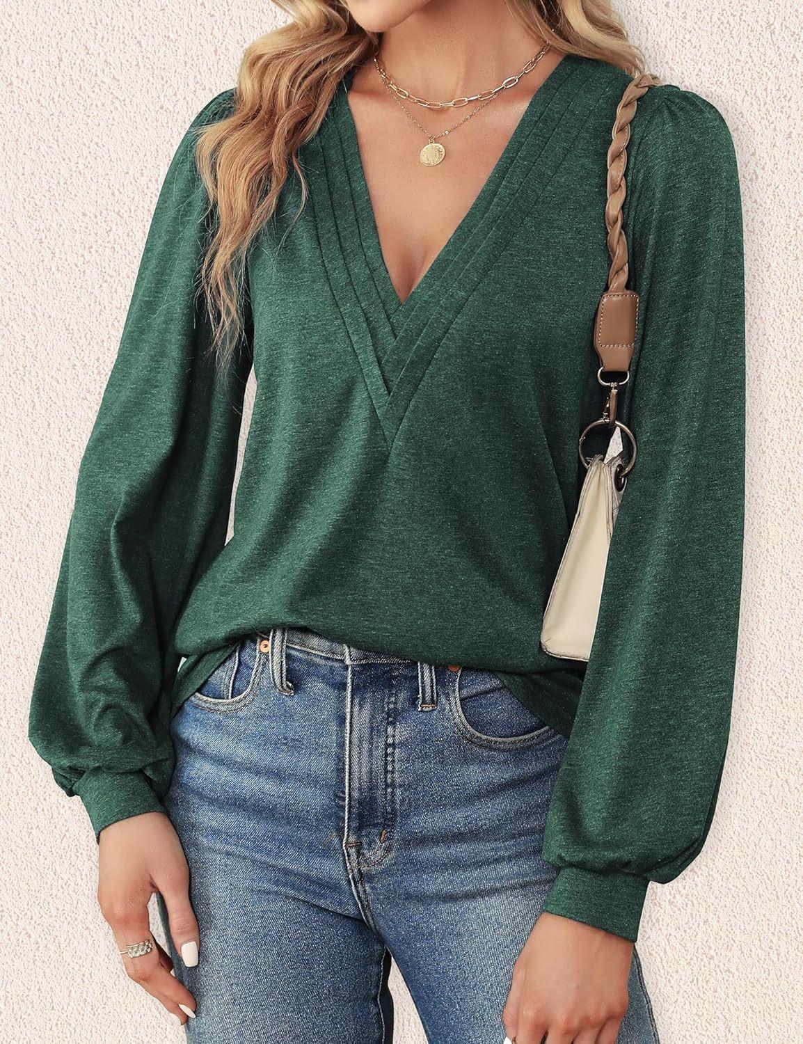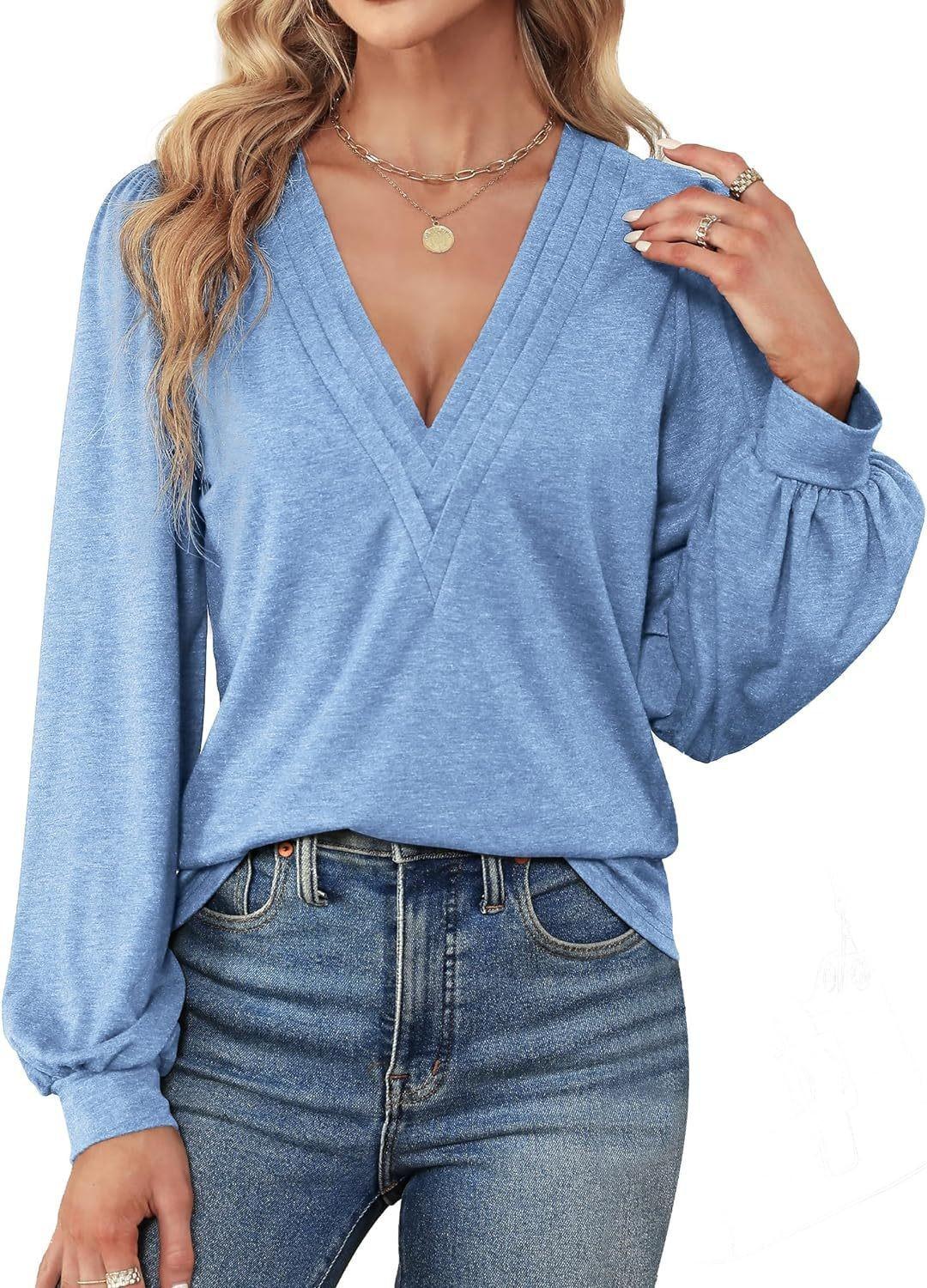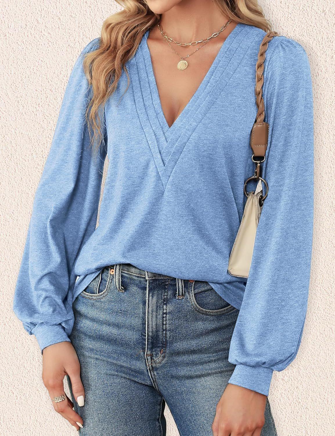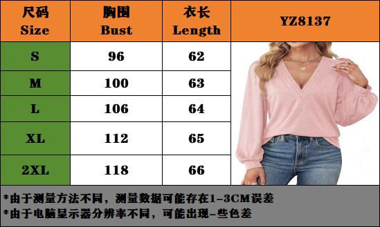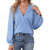 Amazon 2024 Europa y Estados Unidos comercio exterior transfronterizo primavera y verano nueva camisa de mujer cuello en V casual mujer manga larga top
