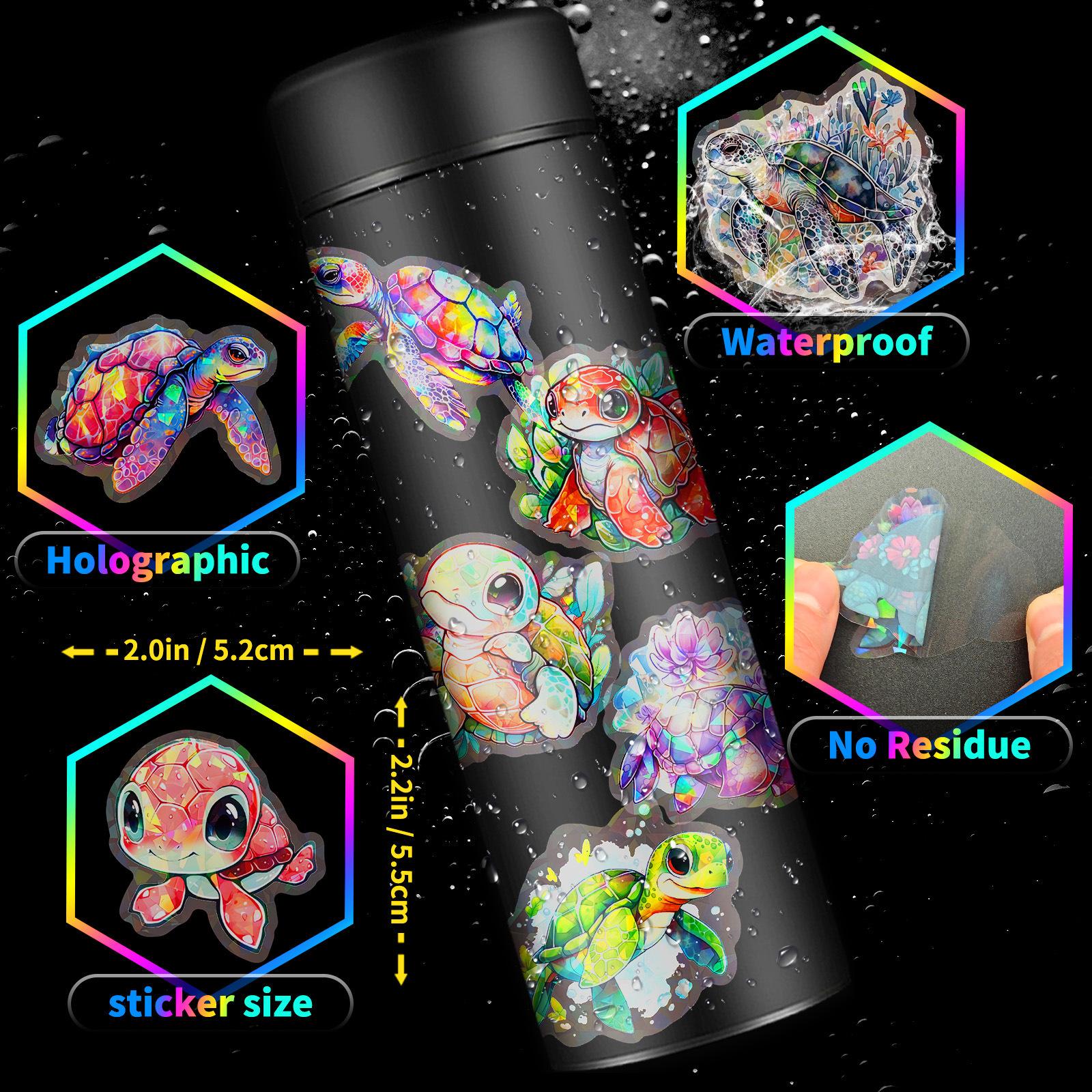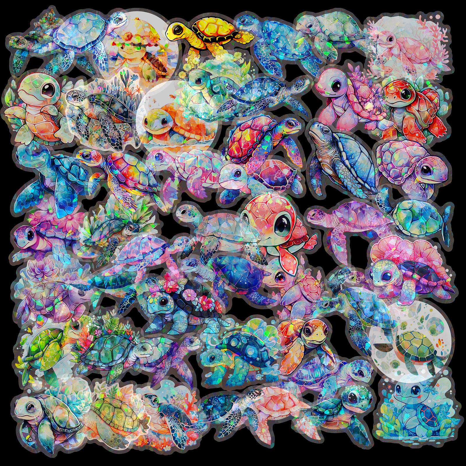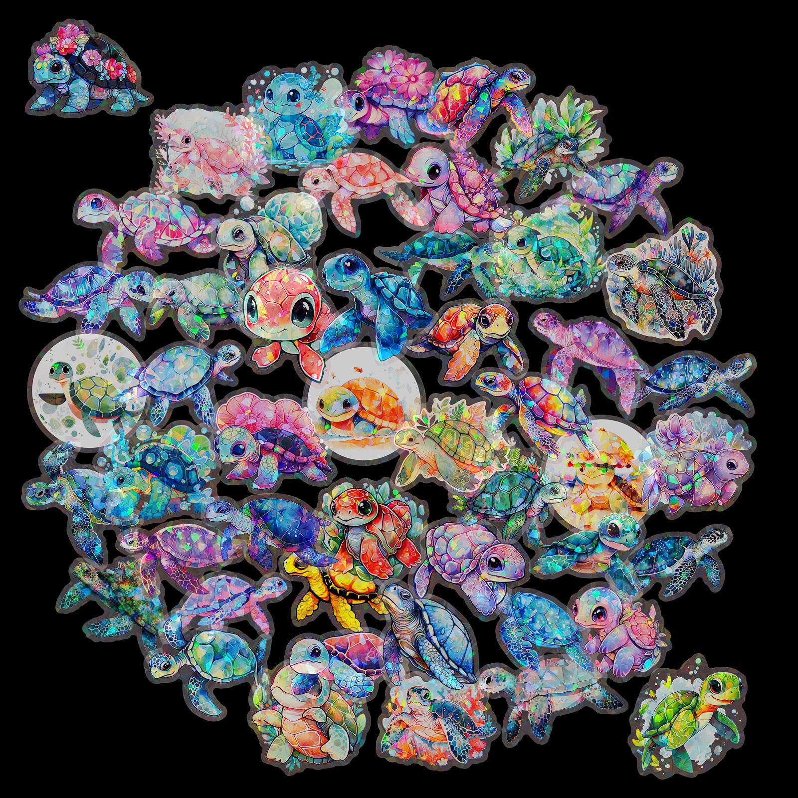 50 pegatinas láser transparentes de tortuga con diseño de ensueño, para equipaje, funda de teléfono y cuaderno.