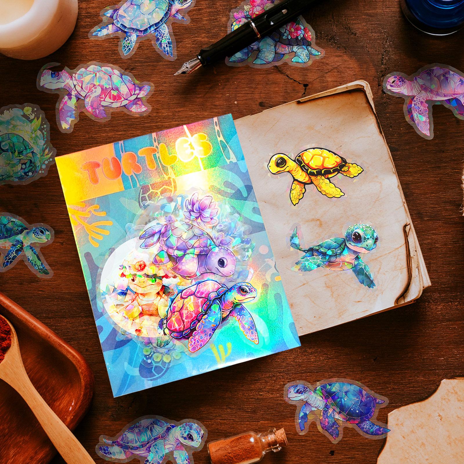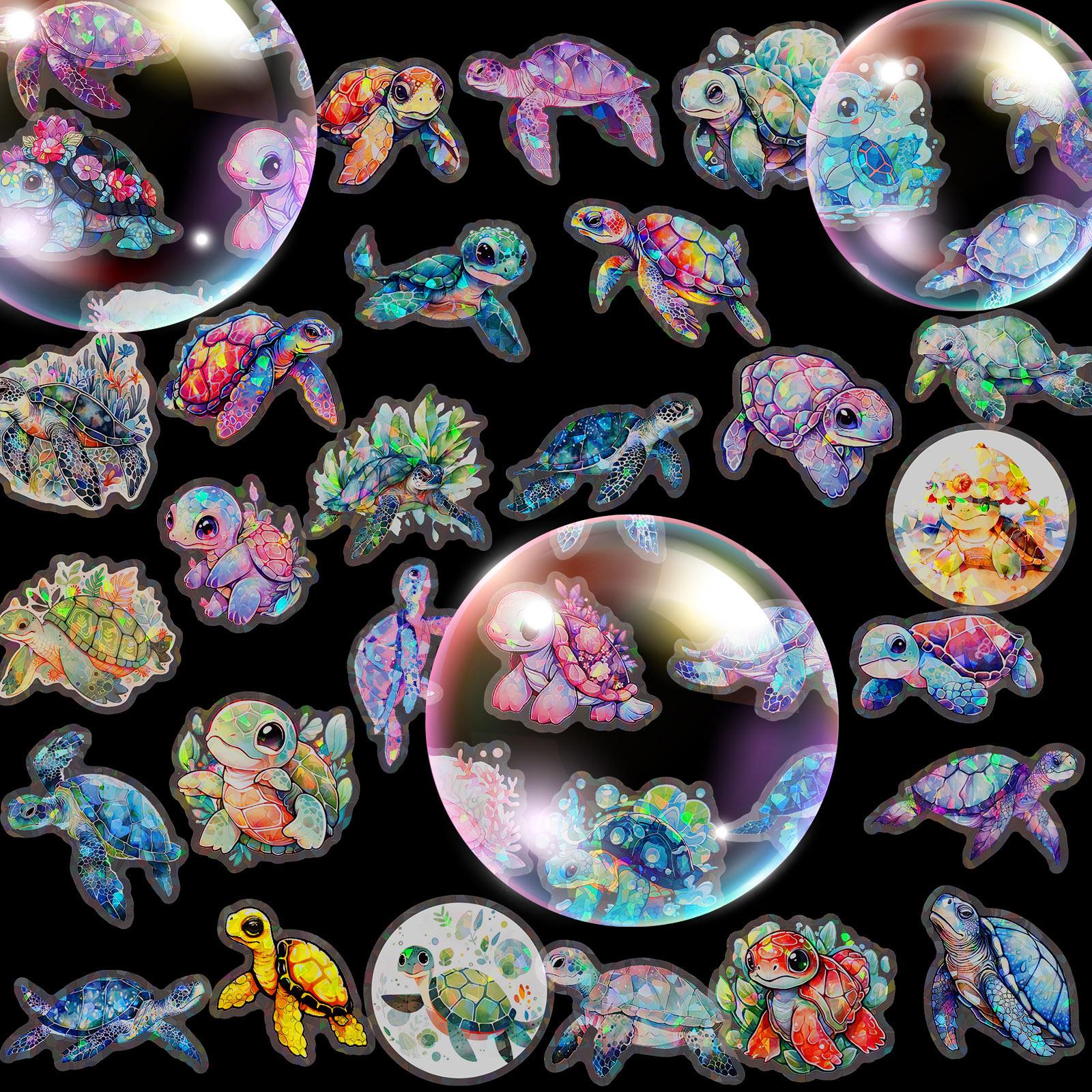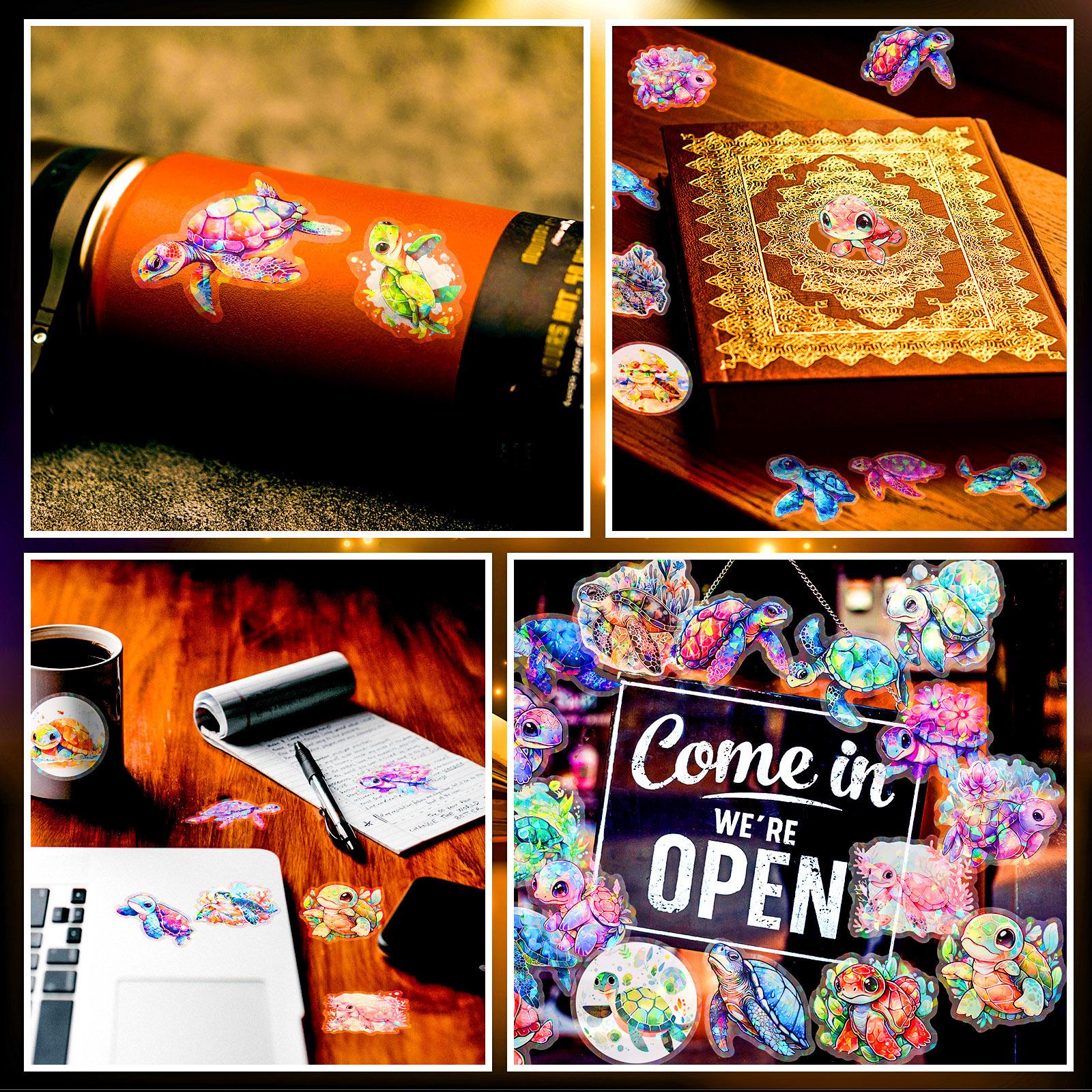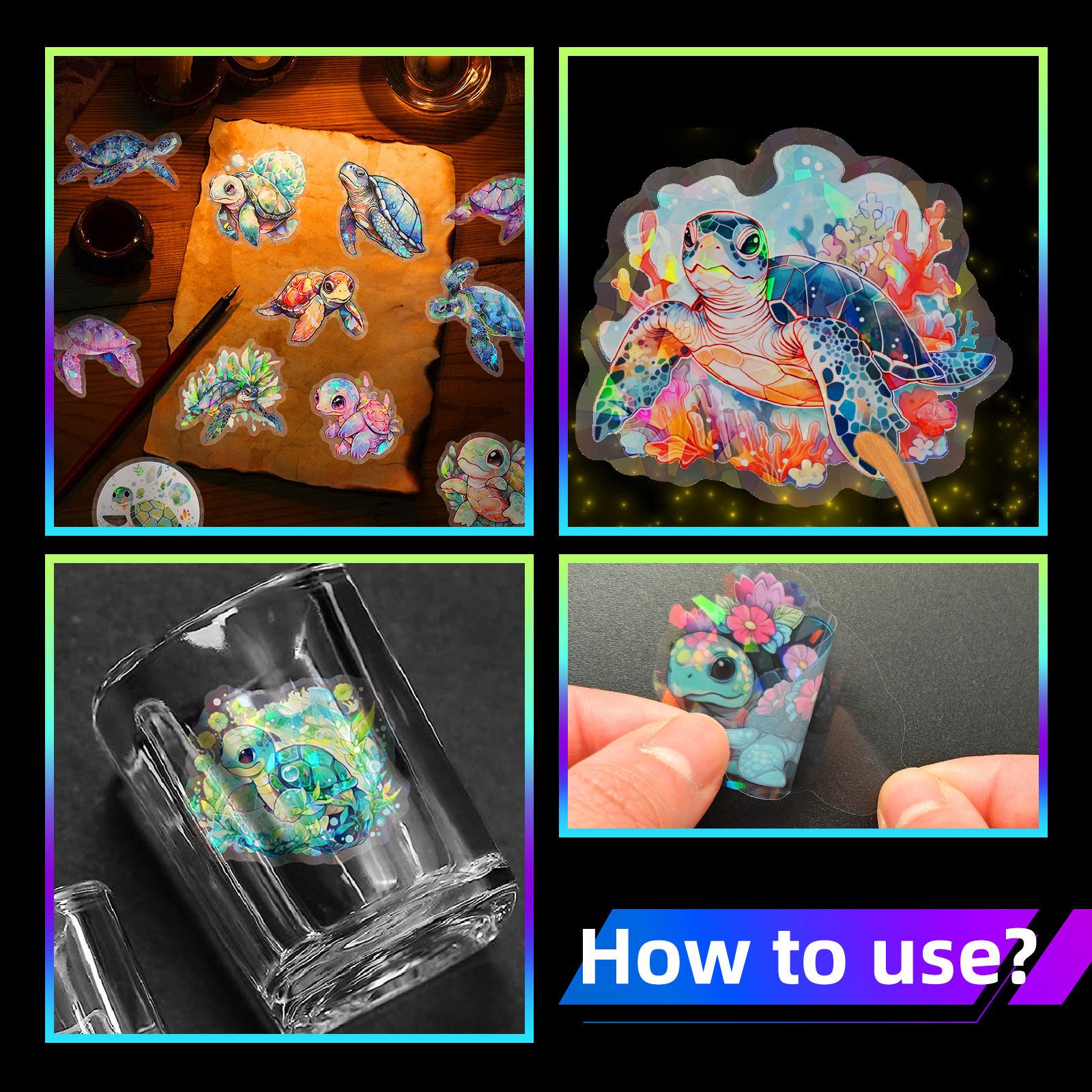 50 pegatinas láser transparentes de tortuga con diseño de ensueño, para equipaje, funda de teléfono y cuaderno.