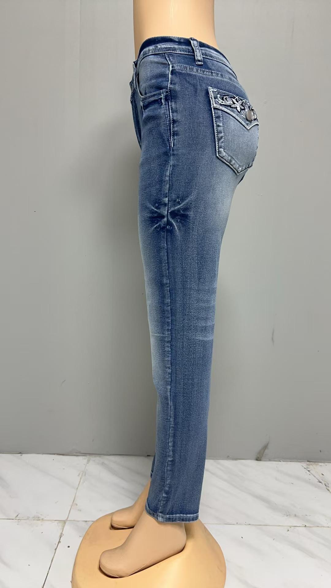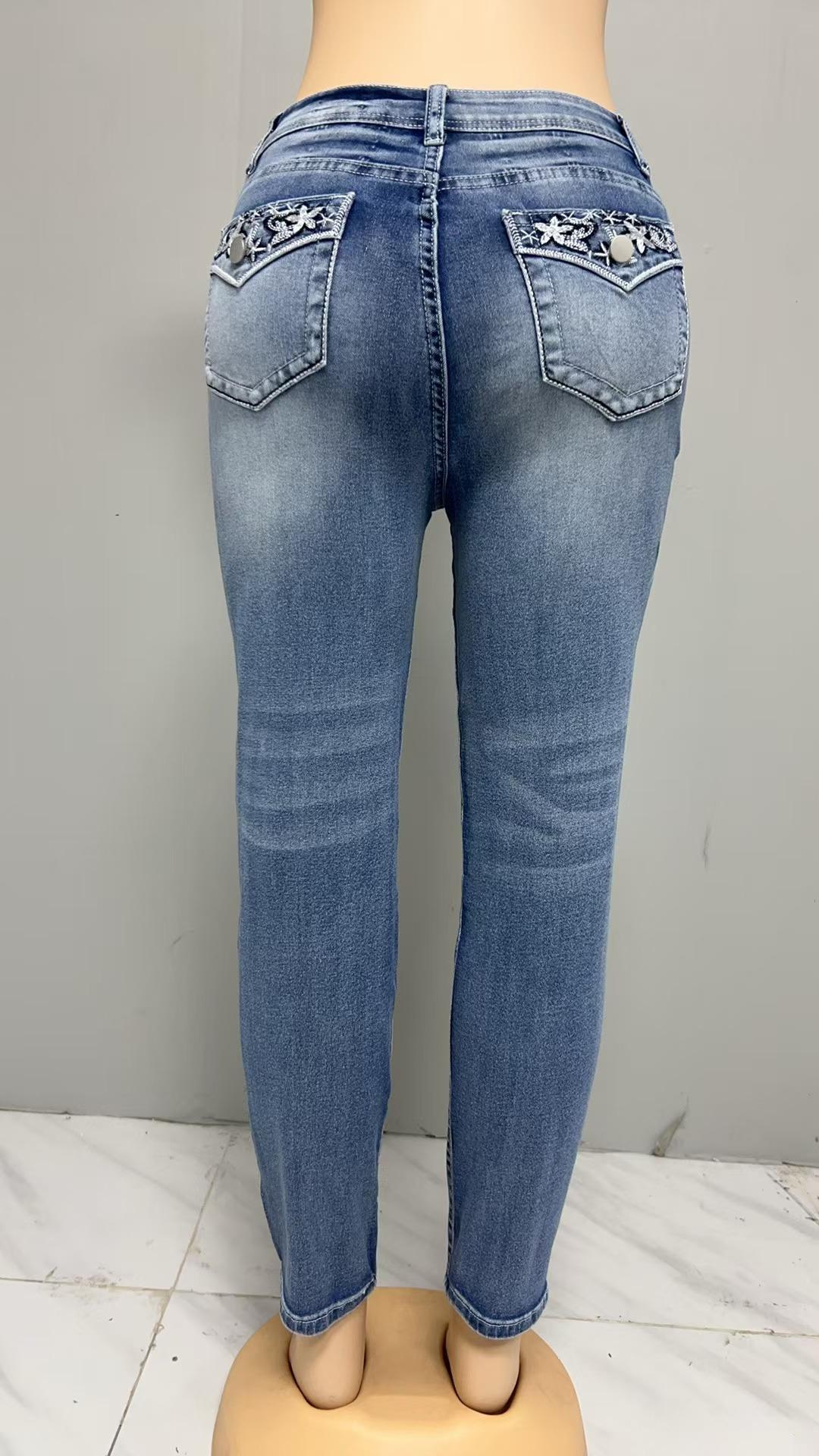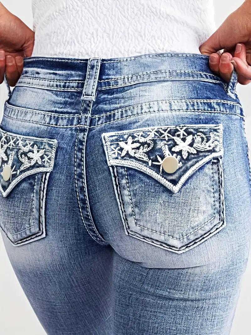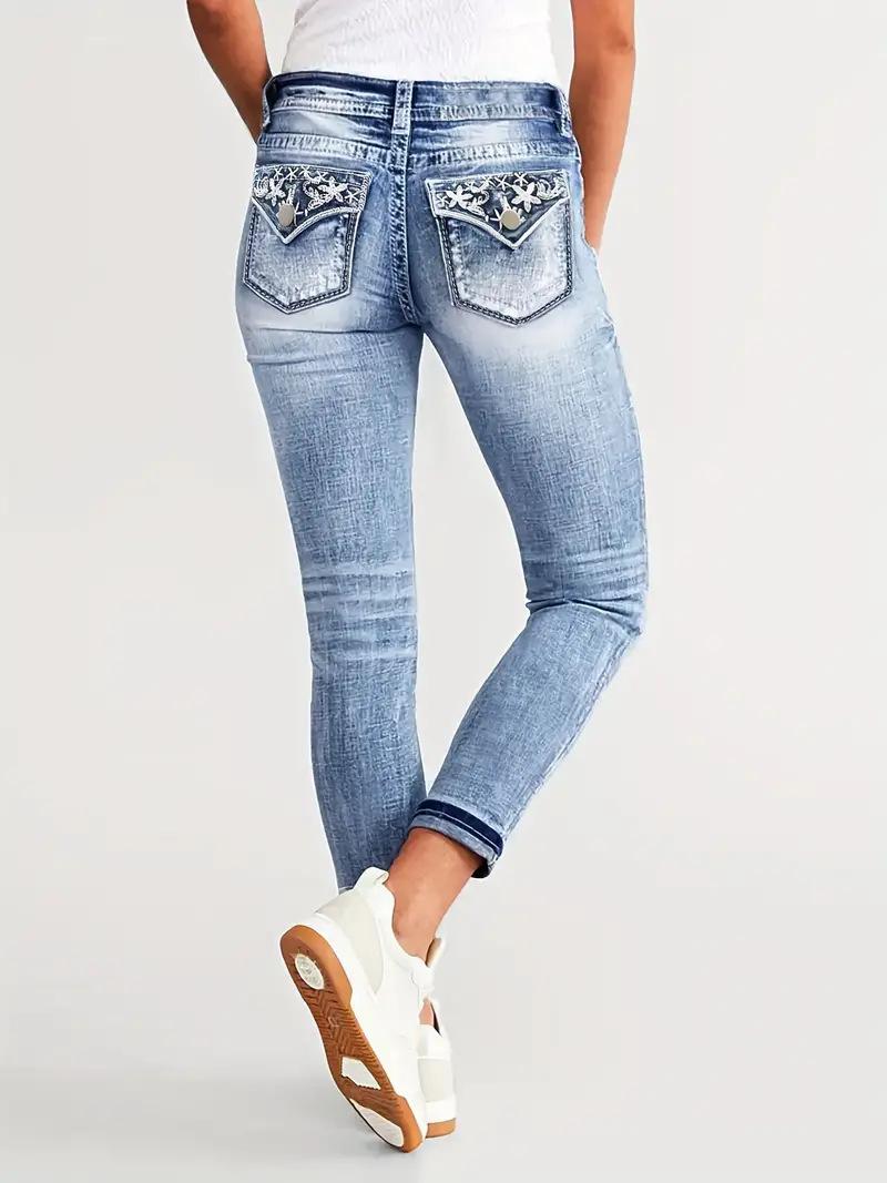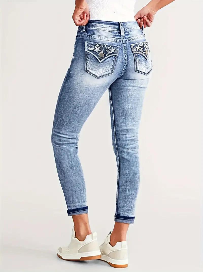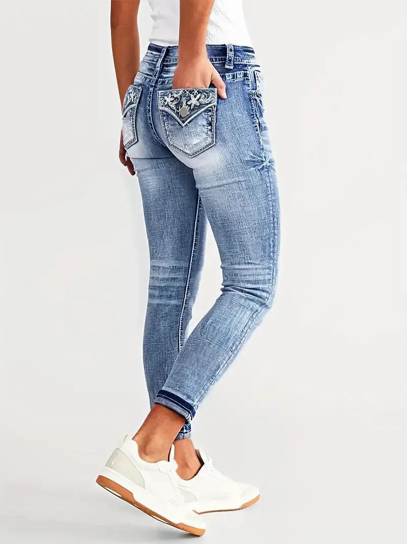 Leggings vaqueros ajustados elásticos de corte entallado para mujer, con bordados que combinan con todo, de Amazon Independent Station, para Europa y América, nuevos.
