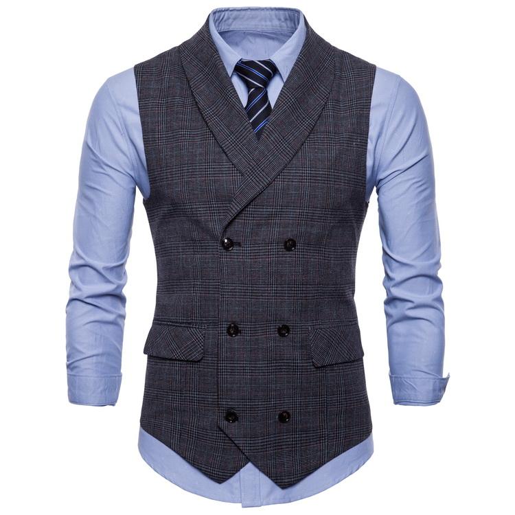 Primavera y Otoño Nuevo Chaleco de Traje a Cuadros para Hombre Negocios Casual Caballero Británico Vestido Talla Grande Chaleco de Traje Chaleco