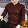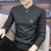 Camiseta de manga larga de otoño e invierno para hombre, moda de cuello en V, color liso, ropa superior, camisa de base gruesa con forro polar, camisa pequeña cálida interior