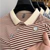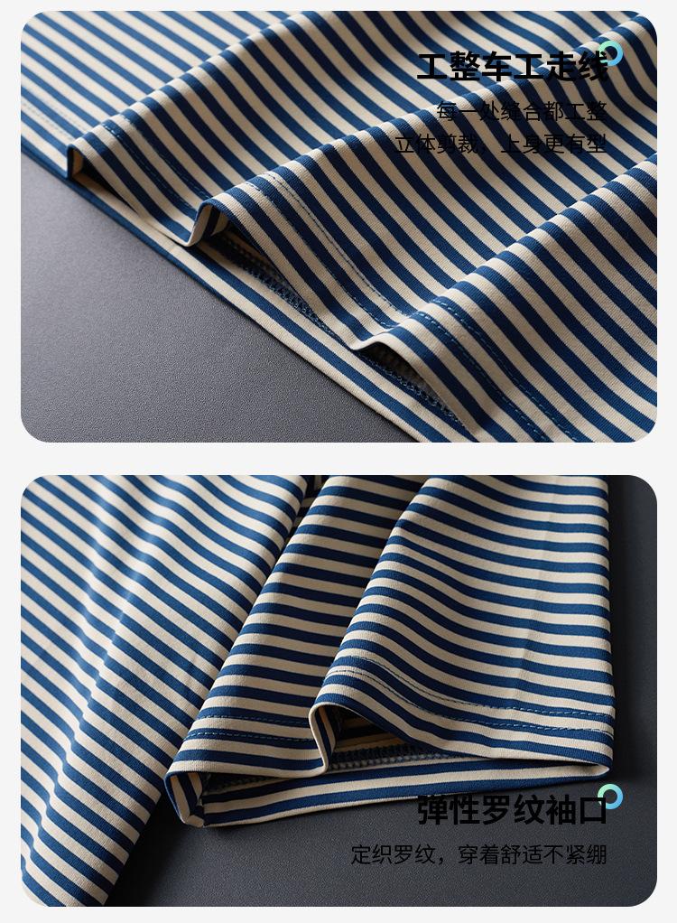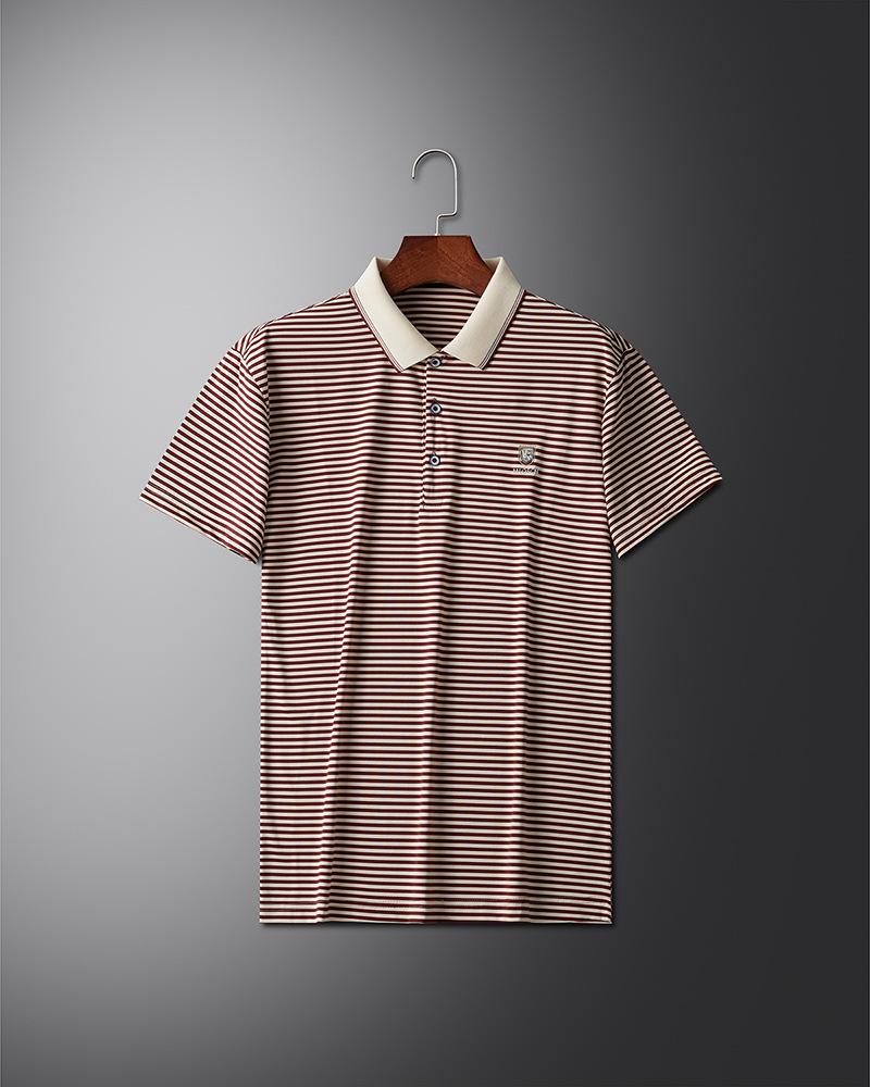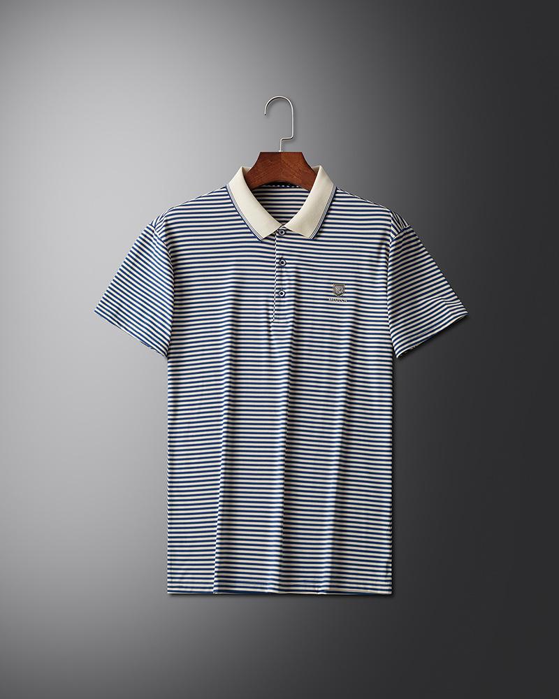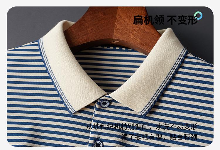 Camiseta de manga corta de algodón de seda helada para hombre, polo informal de negocios a rayas, fina y transpirable, novedad de verano de 2024