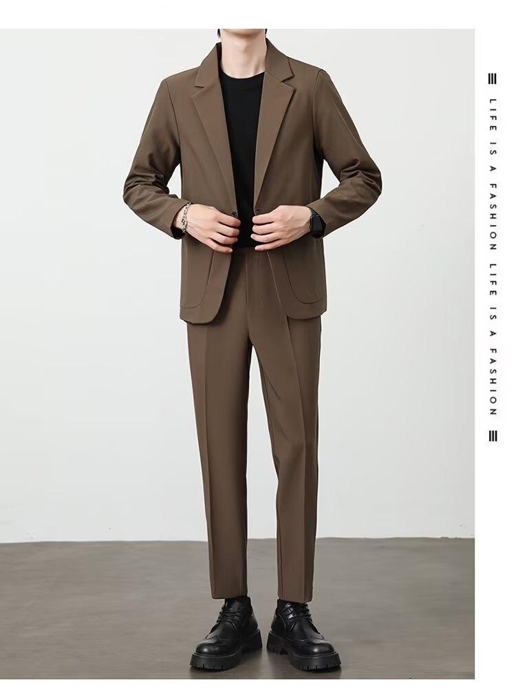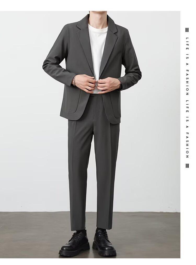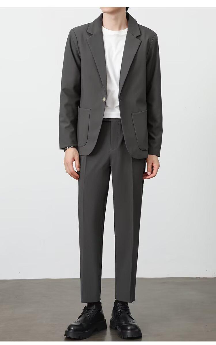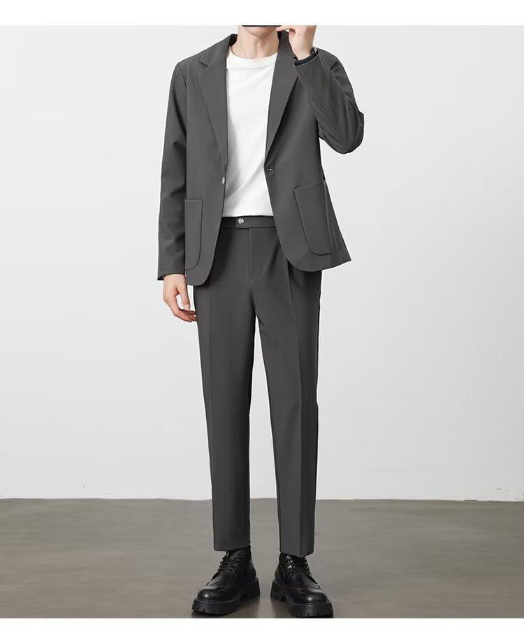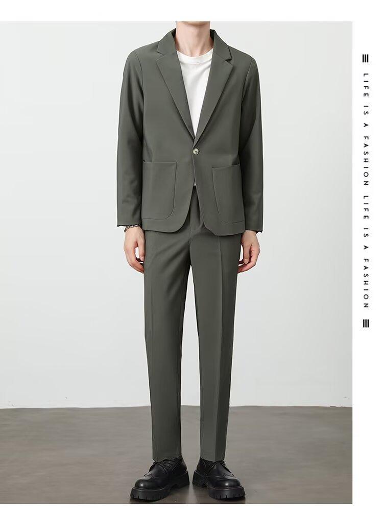 Traje de novio, traje informal de negocios de color puro, traje de tres piezas para hombre, estilo coreano, ajustado, moderno, para trabajo y profesional.