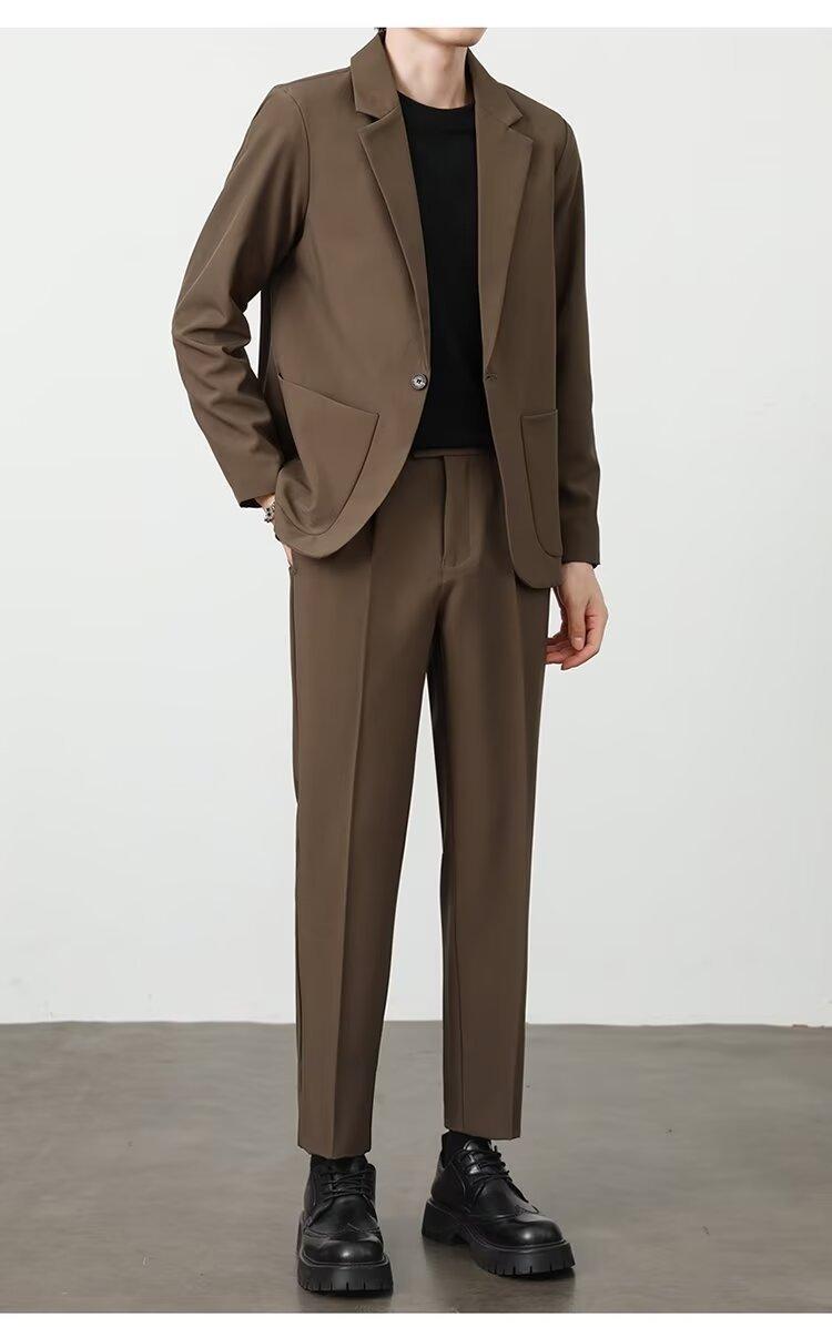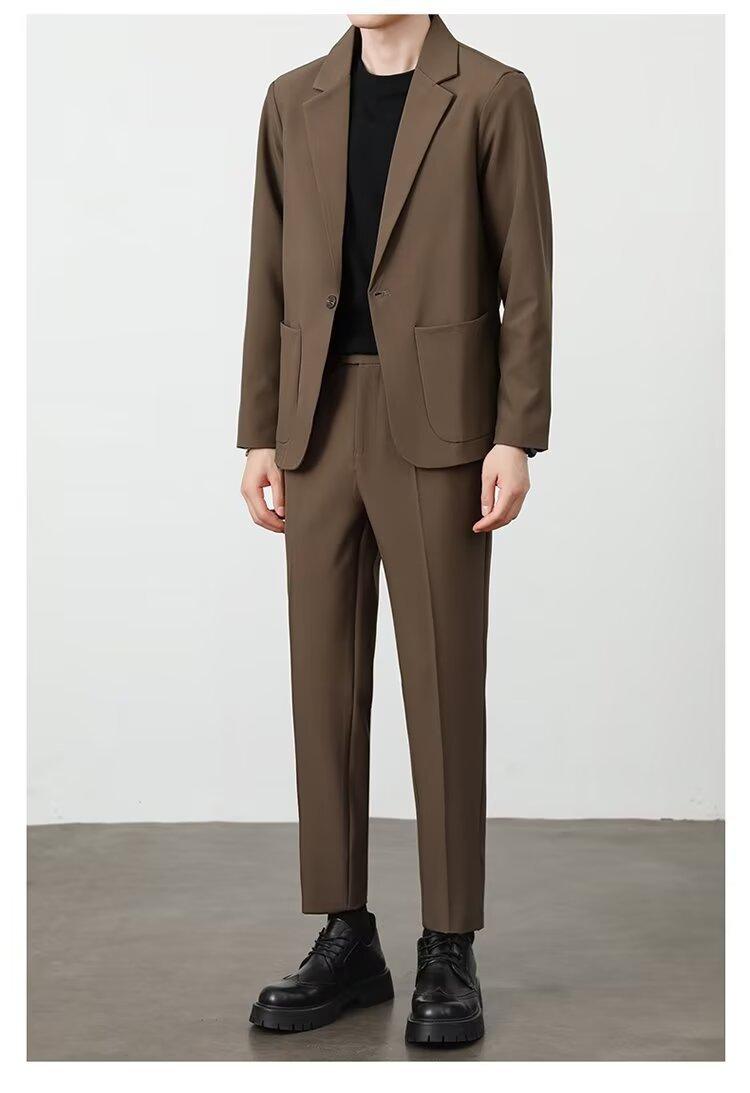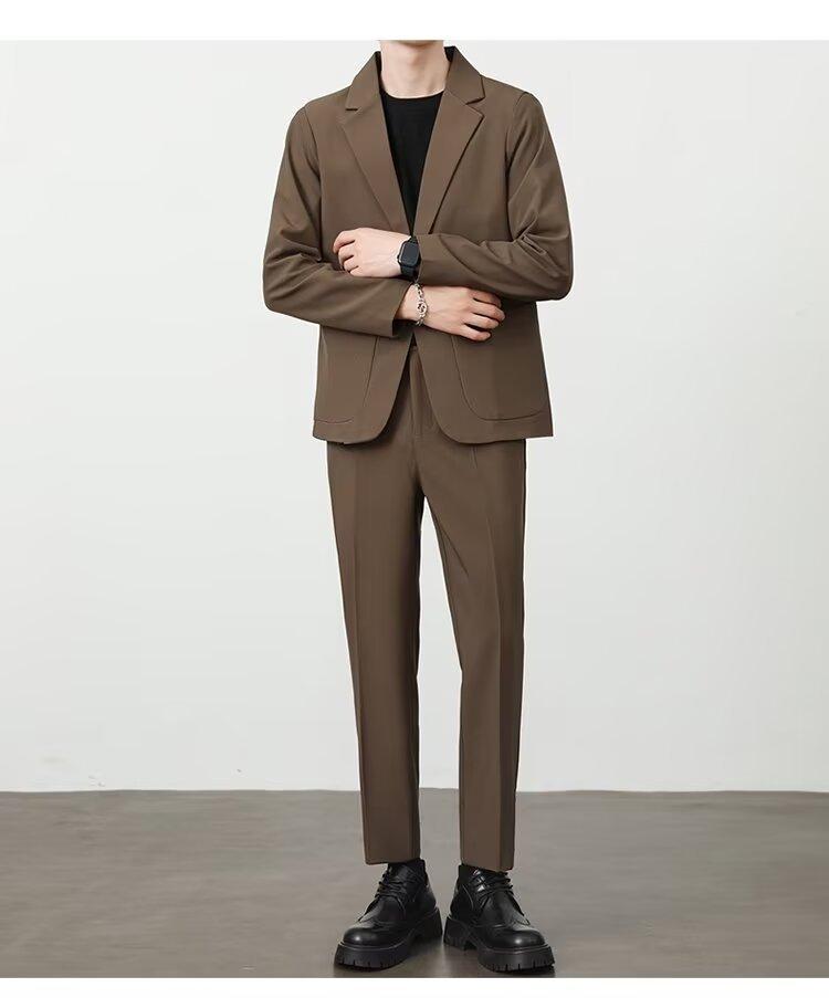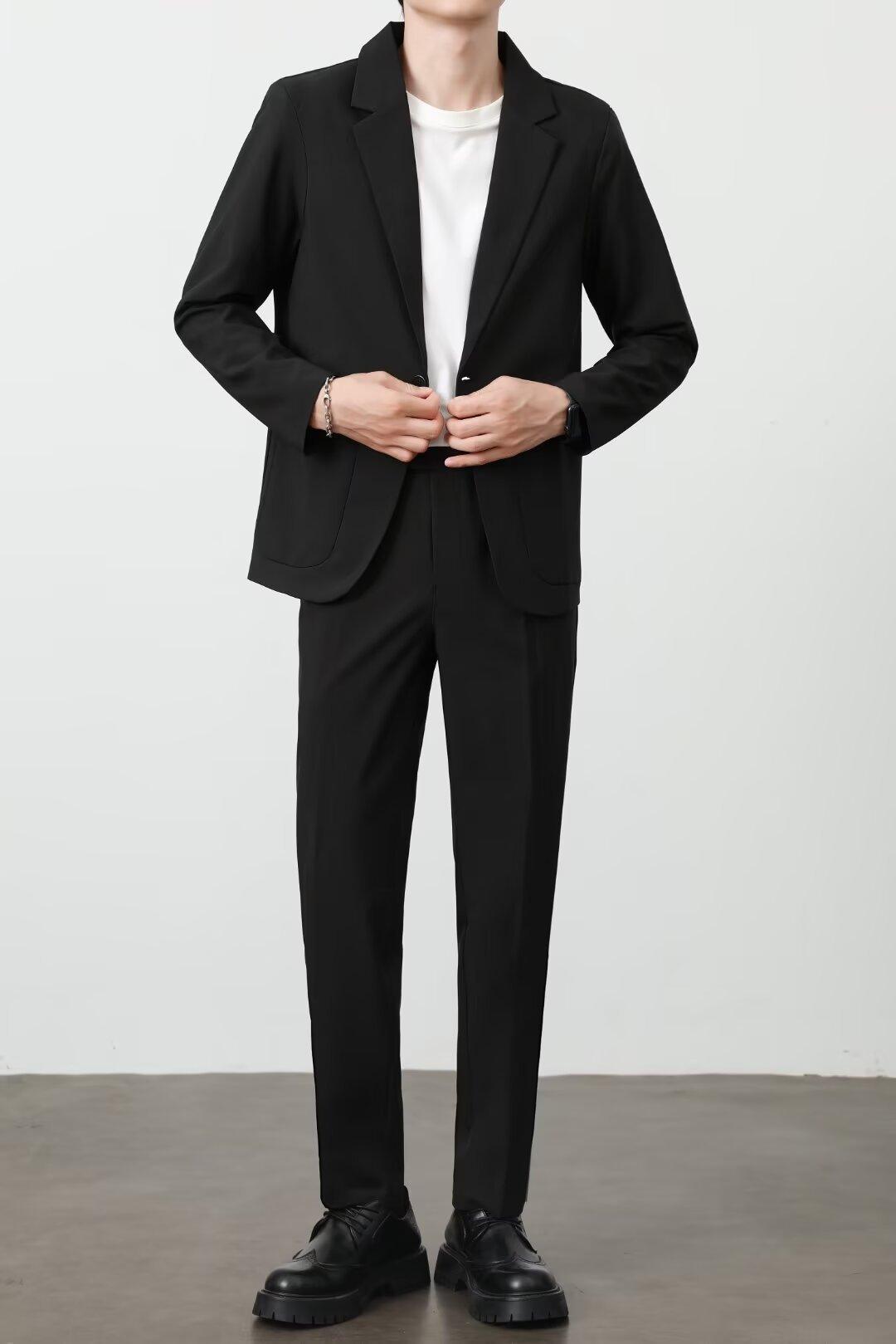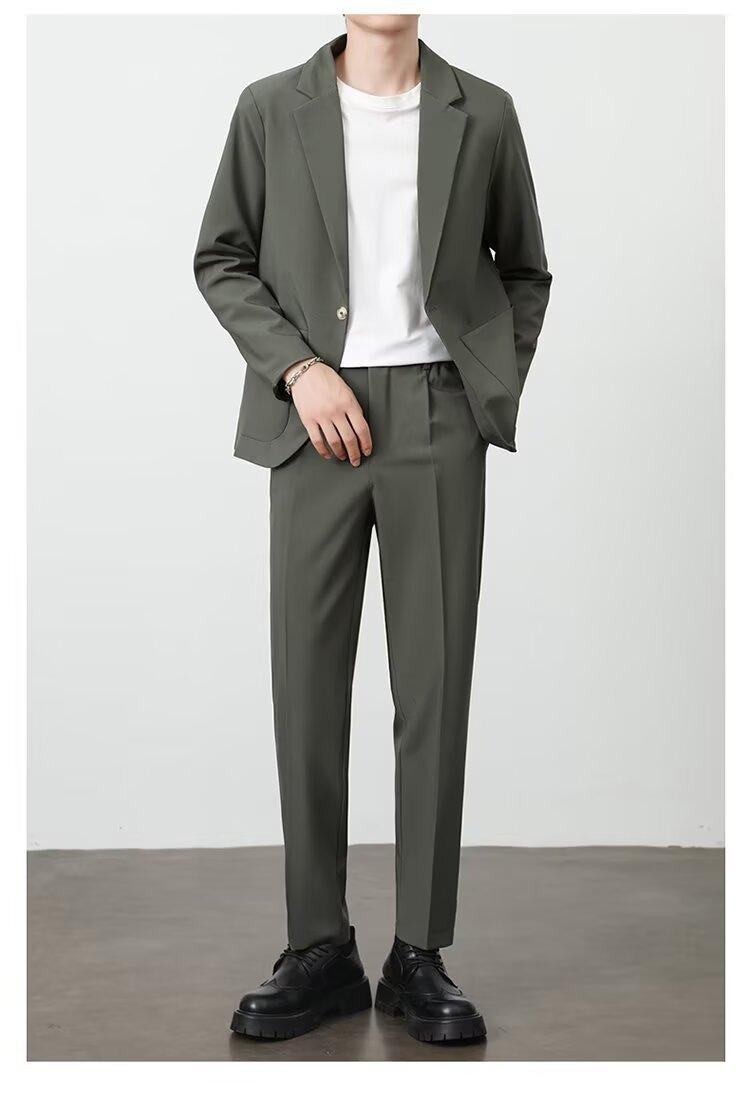 Traje de novio, traje informal de negocios de color puro, traje de tres piezas para hombre, estilo coreano, ajustado, moderno, para trabajo y profesional.