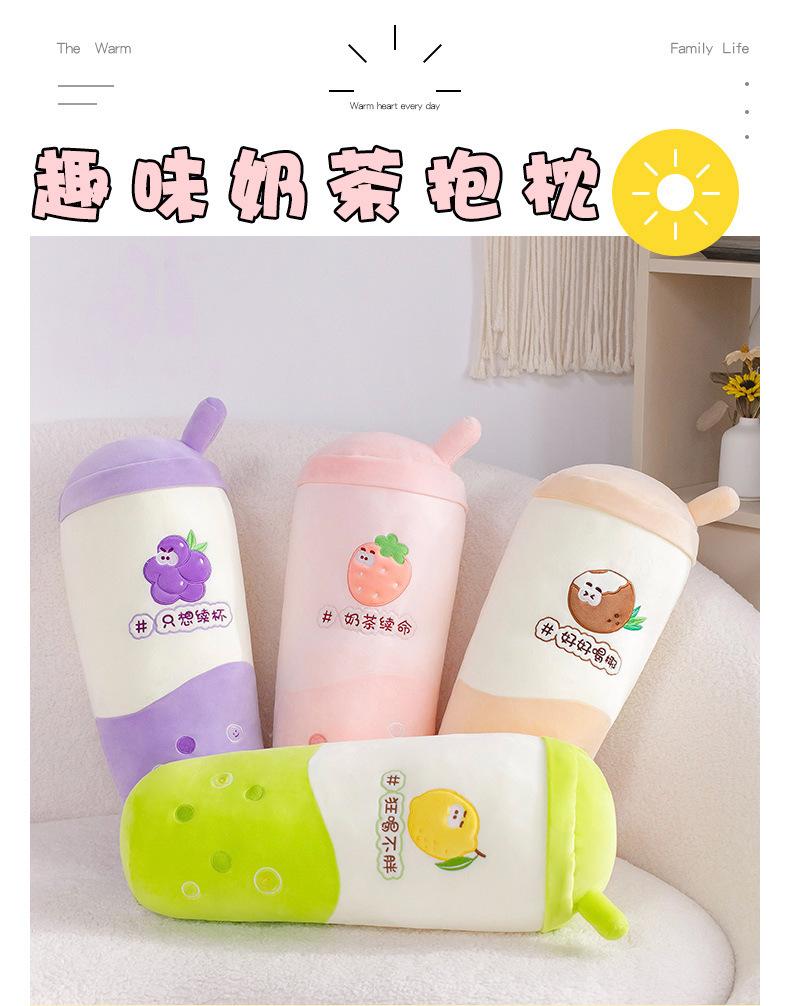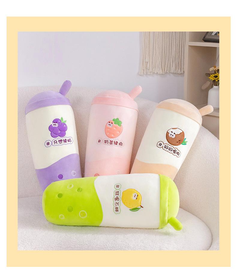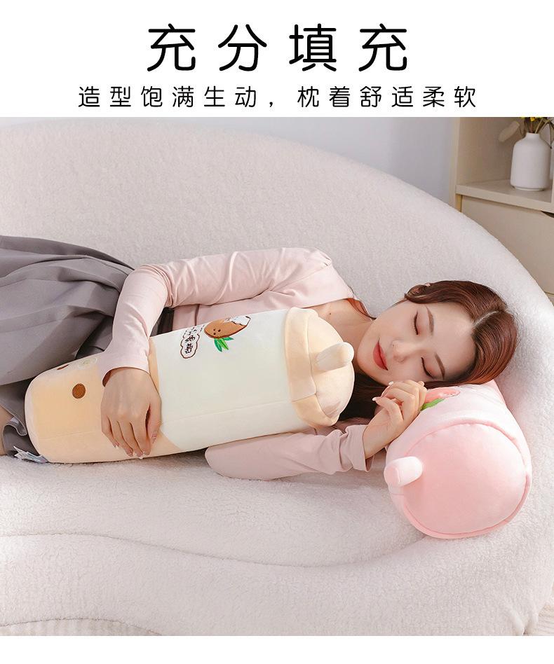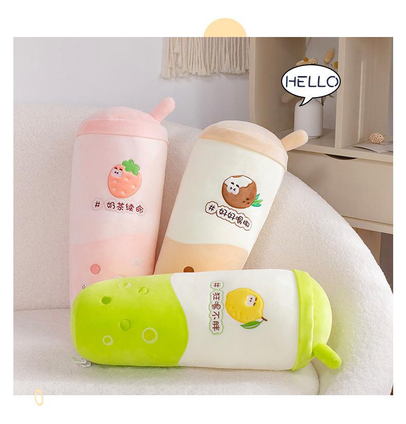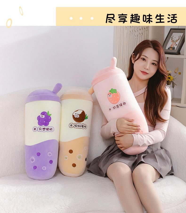 Venta al por mayor de almohadas creativas de té con leche de frutas, muñeca roja de red, juguete de peluche para niñas, cama para dormir, muñeca de tela suave