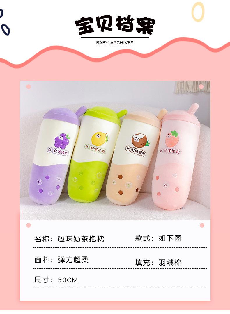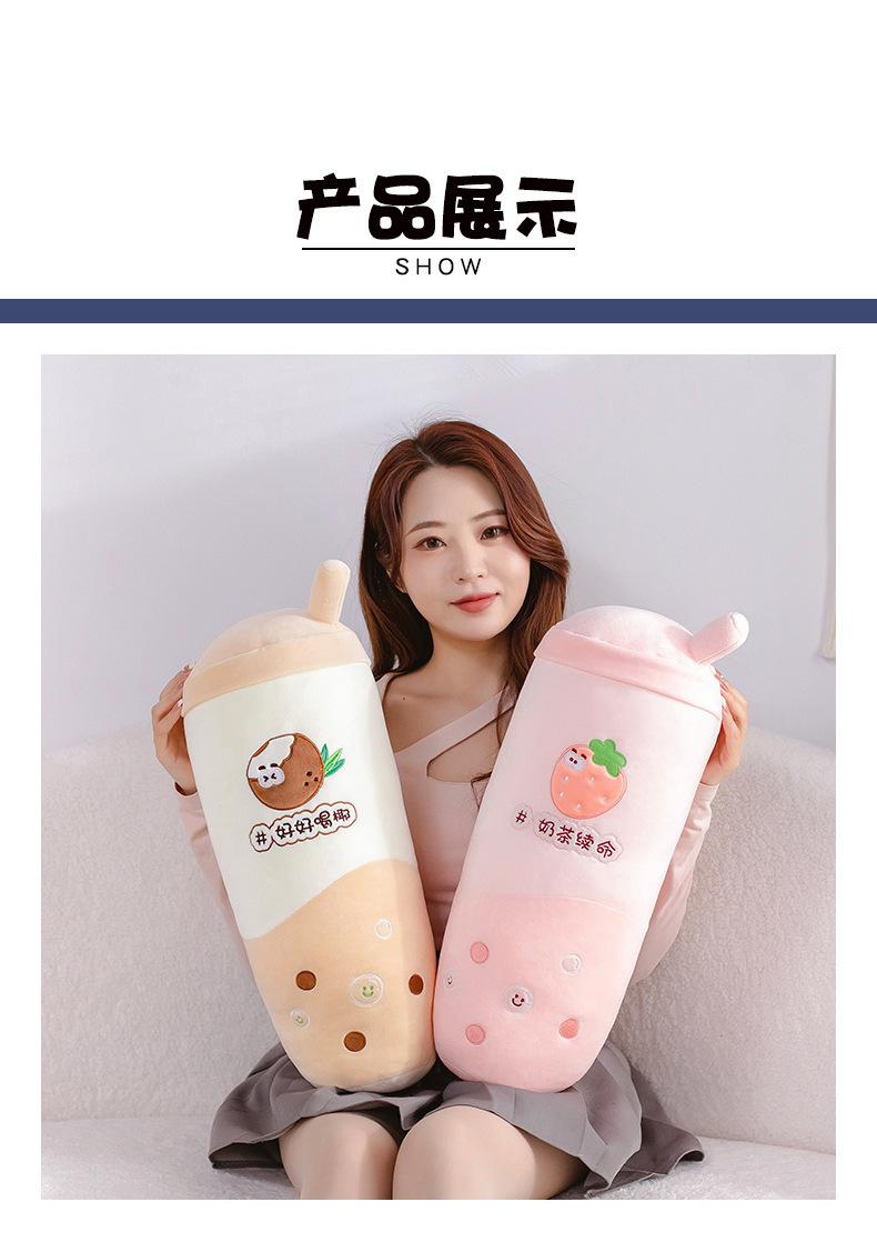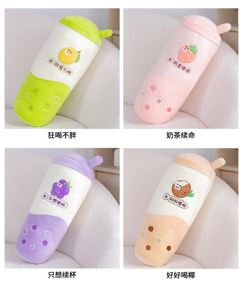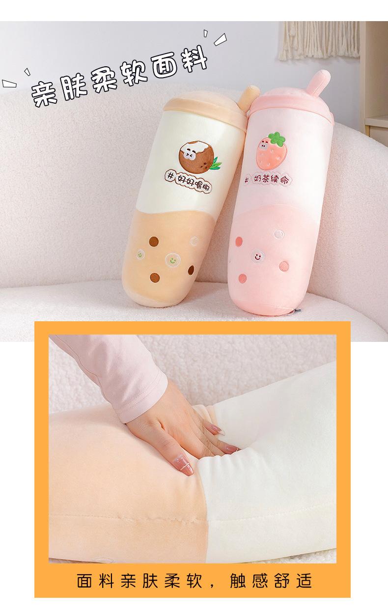 Venta al por mayor de almohadas creativas de té con leche de frutas, muñeca roja de red, juguete de peluche para niñas, cama para dormir, muñeca de tela suave