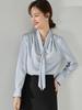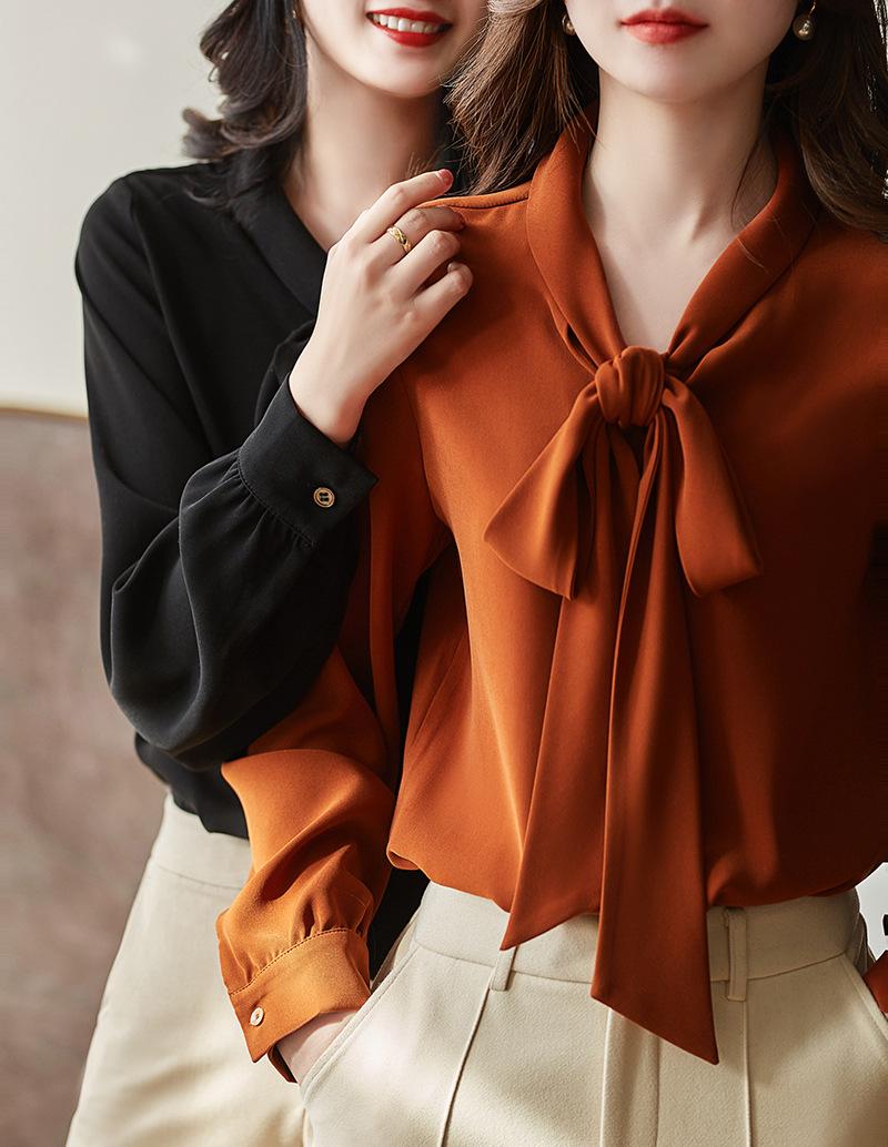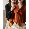 Ropa de trabajo de otoño para comercio exterior, con prenda interior, un hermoso lazo con lazo y un top drapeado con cuello en V para mujer.