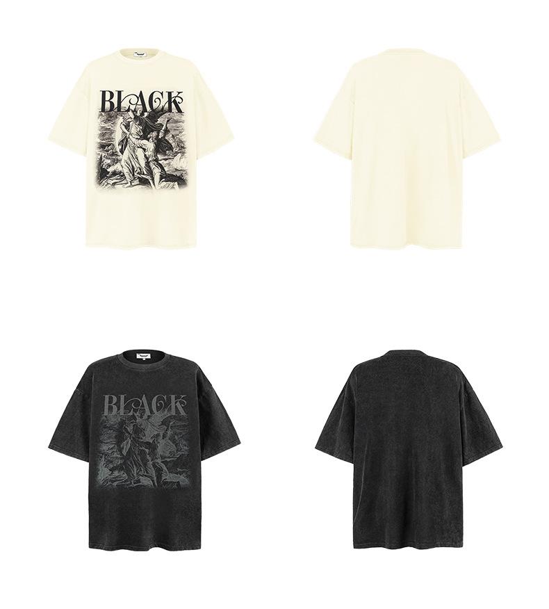 Camiseta de manga corta con estampado de personajes antiguos, estilo retro americano, de marca moderna, holgada, estilo vintage para hombre, informal, para parejas