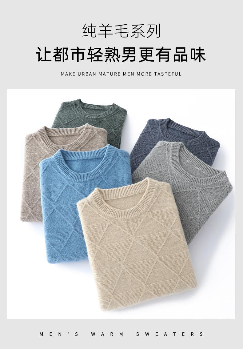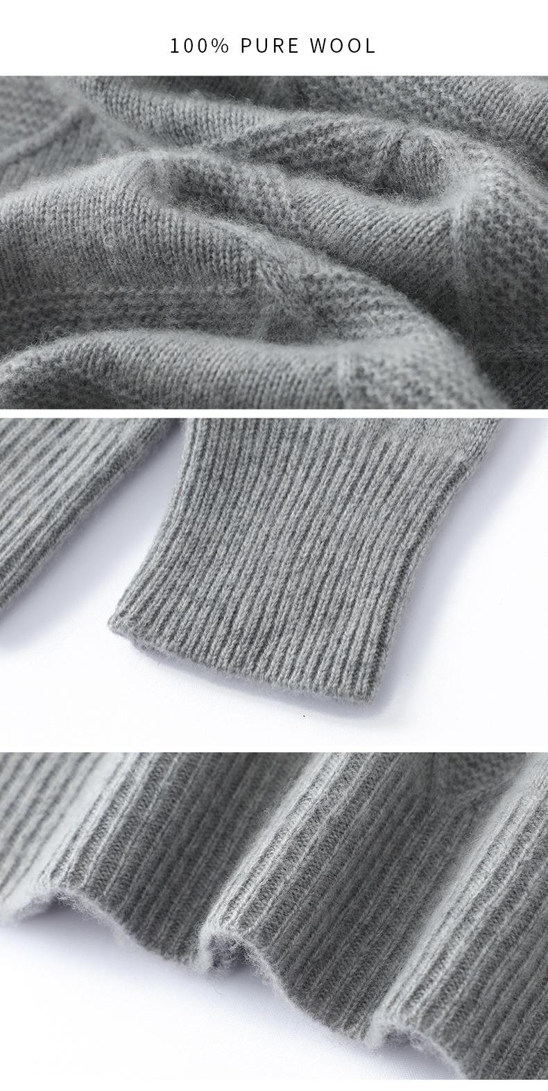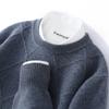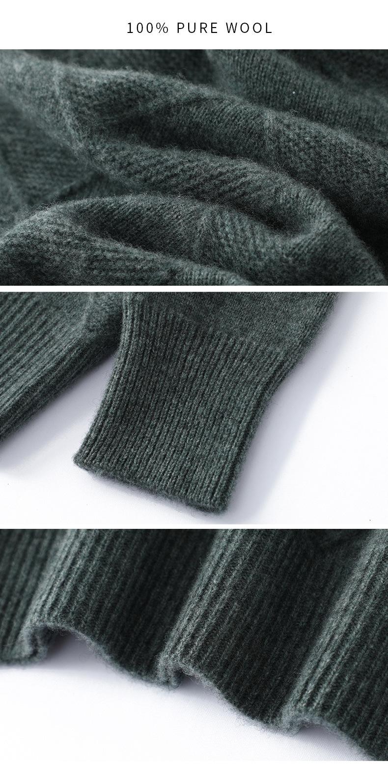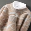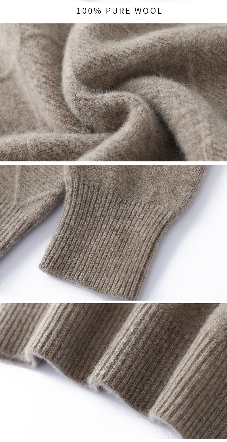 Suéter de lana pura de invierno para hombre, suéter de jacquard grueso con cuello redondo, suéter holgado informal de lana, suéter básico